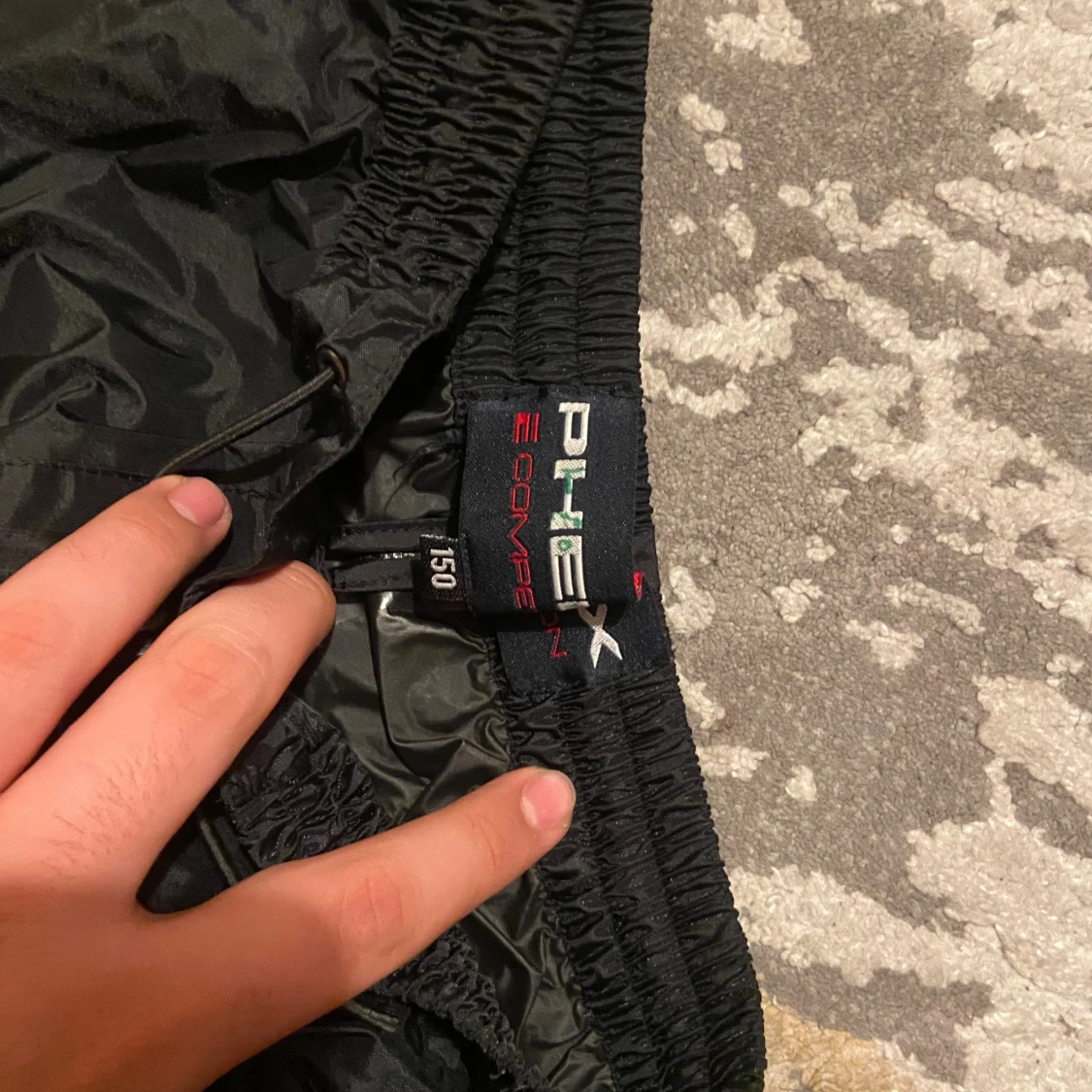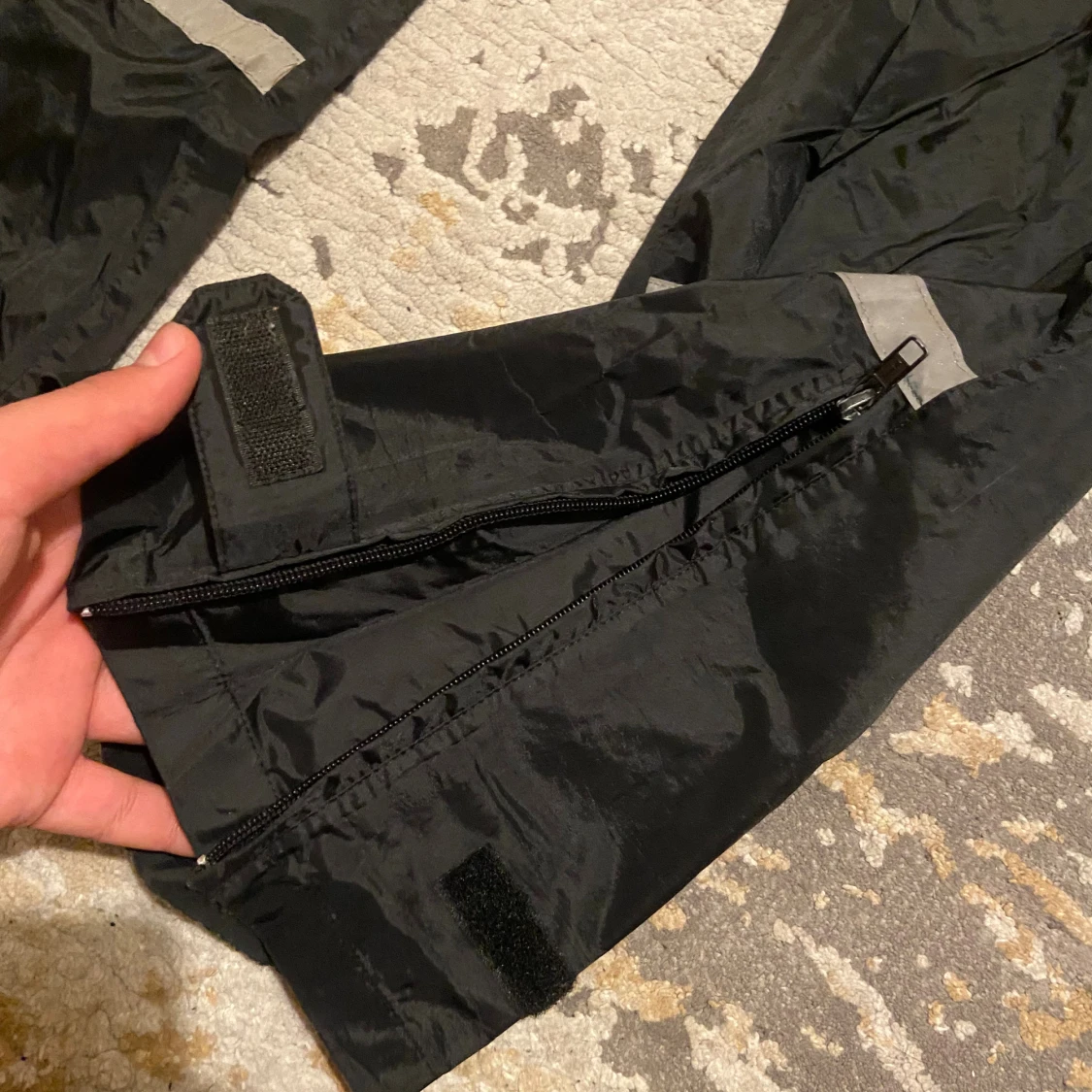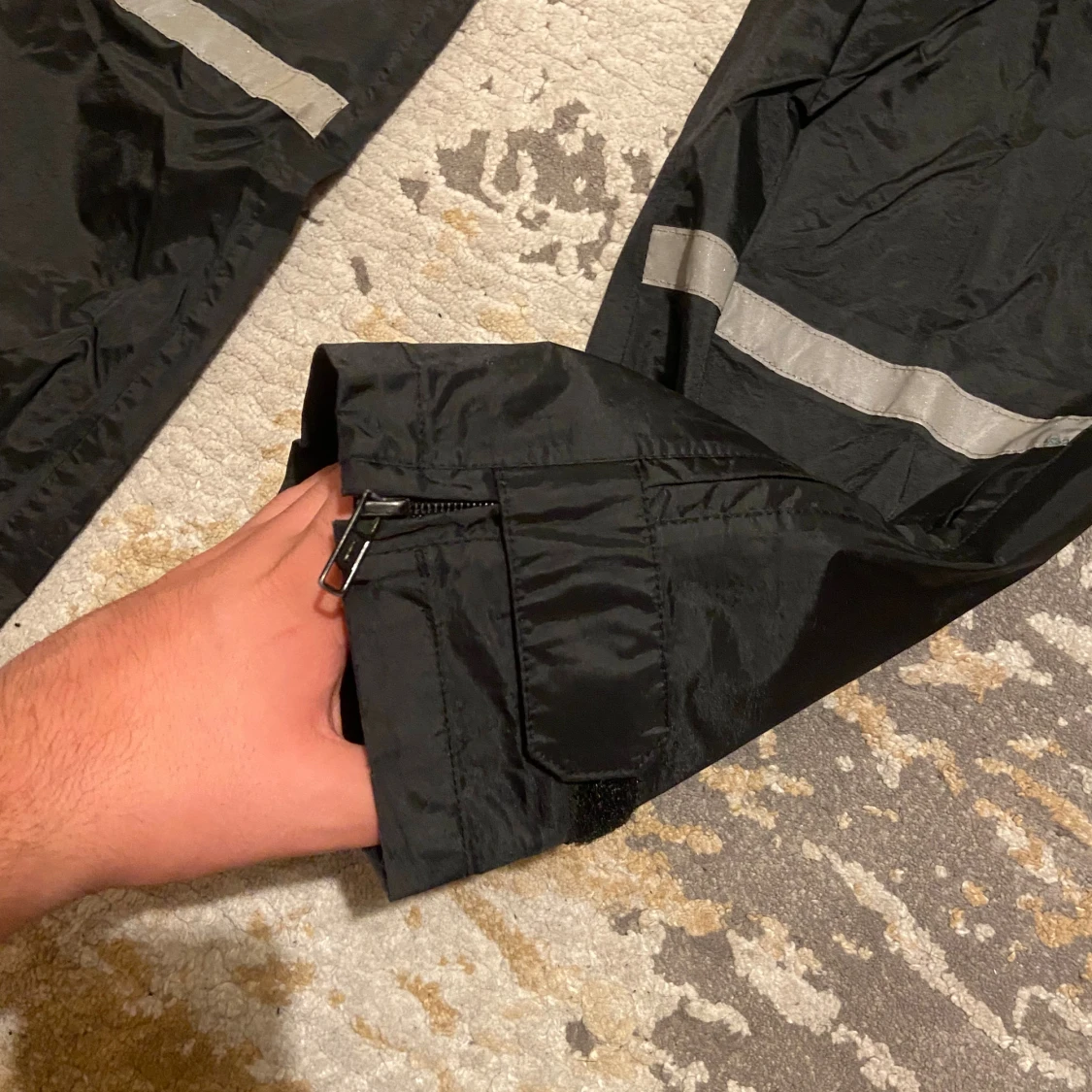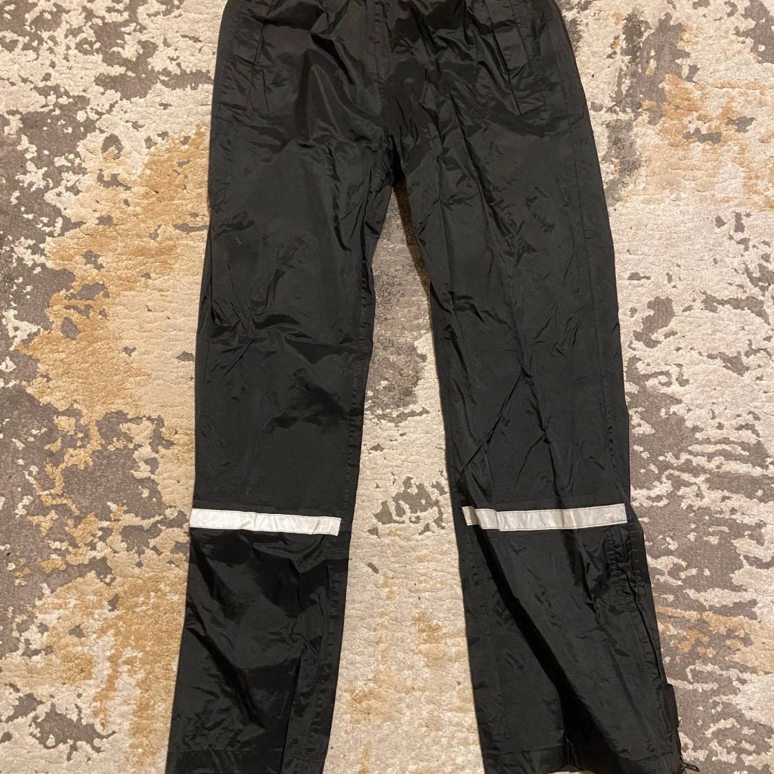Svarta täckbyxor från Philey med reflexdetaljer runt benen, elastisk midja med snörning och dragkedjor vid bensluten. Perfekta för kalla och blöta dagar, tillverkade i syntetmaterial som står emot väta. Byxorna är till barn, både pojkar och flickor. Storlek 150 barn. Priset kan diskuteras! Endast seriösa köpare, tack!