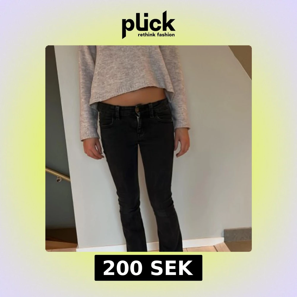 Säljer ett par svarta jeans från Gina Tricot med låg midja och bootcut. Strl. 164