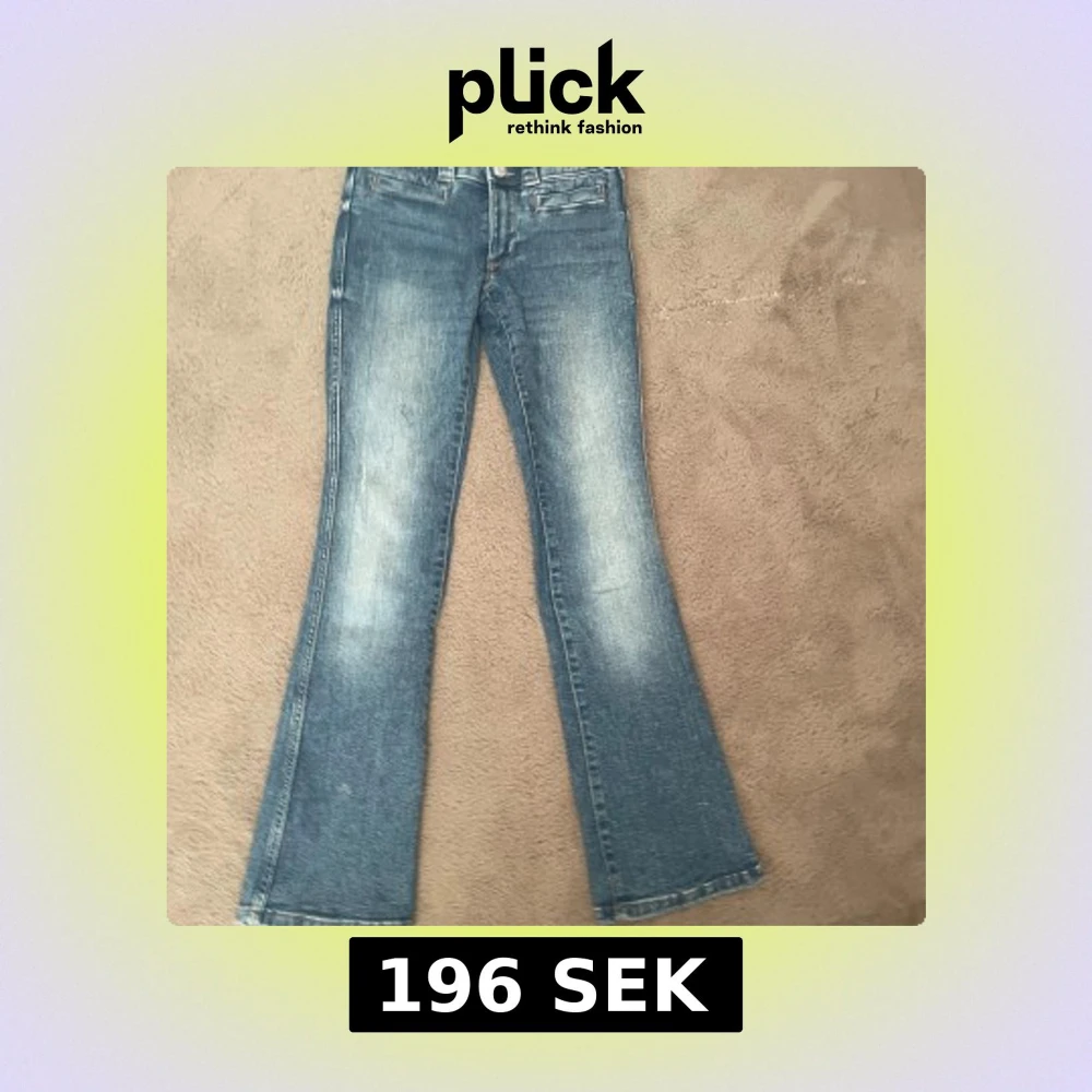 Snygga blå jeans med bootcut-modell och coola fickor med knappar bak. Jeansen har en klassisk tvättad look och sitter skönt i midjan. Perfekta för dig som gillar en retrostil med lite utsvängda ben använd ett par tal gånger men är för små nu .