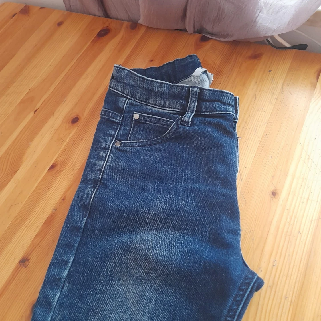 Snygga blå jeans från Mywear Young i klassisk femficksmodell. Jeansen har normal passform, raka ben och resår i midjan för extra komfort. Materialet är tåligt denim och färgen är mellanblå med lätt slitning på låren. Perfekta till vardags för en avslappnad look.