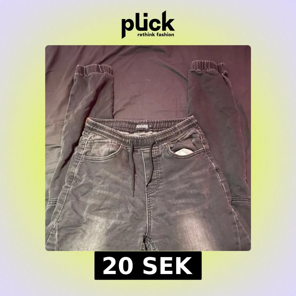 Svarta bikerinspirerade byxor från Denimday med elastisk midja och snörning. Byxorna har ribbade detaljer över knäna och muddar vid bensluten. Snygg tvättad look och flera fickor fram och baktill. Perfekta för en cool streetstil.