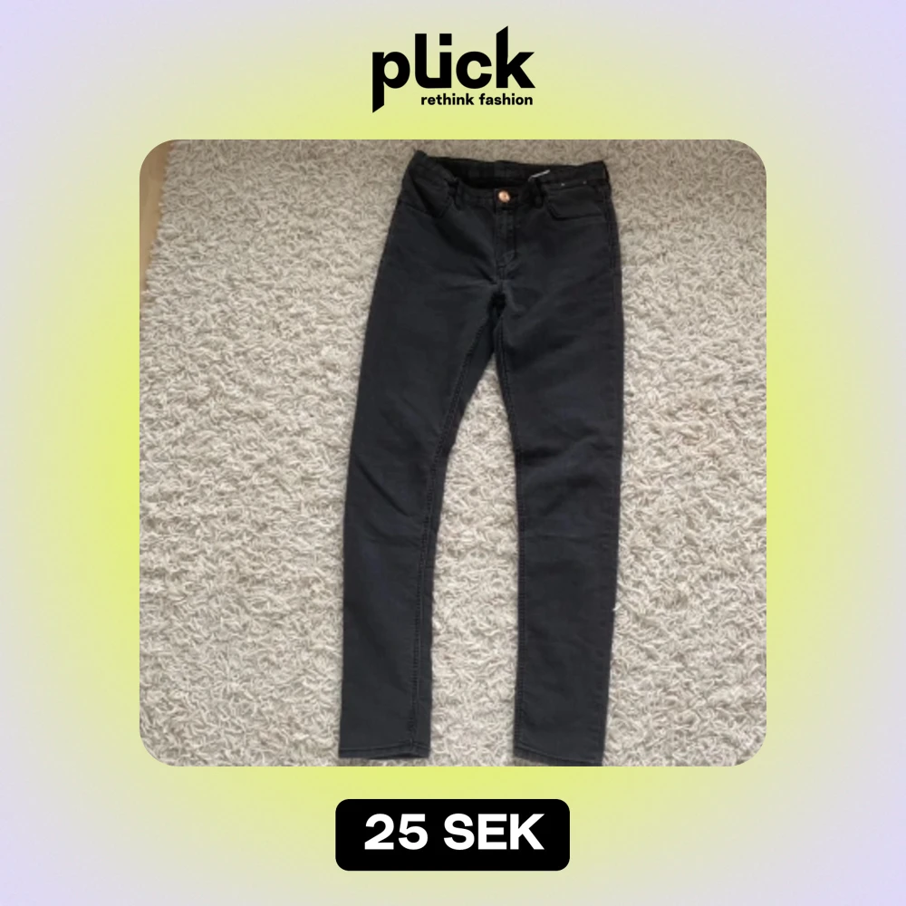 Ett par svarta skinny fit jeans i storlek 152. Byxorna har en knapp och dragkedja framtill samt fickor både fram och bak. Tillverkade i Bangladesh.