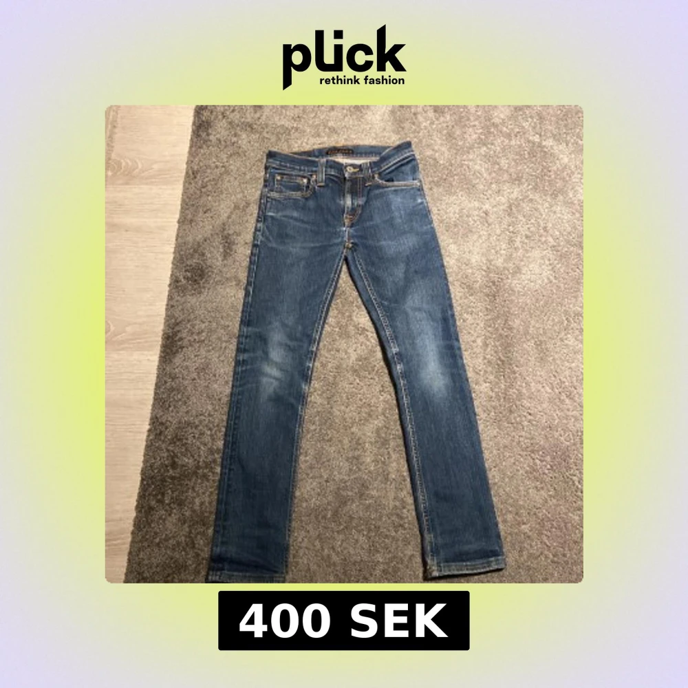 Säljer ett par klassiska blå slim fit jeans från Nudie jeans. Dom är köpta 2025 och det är väldigt nytt skick