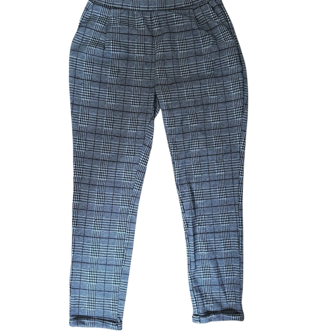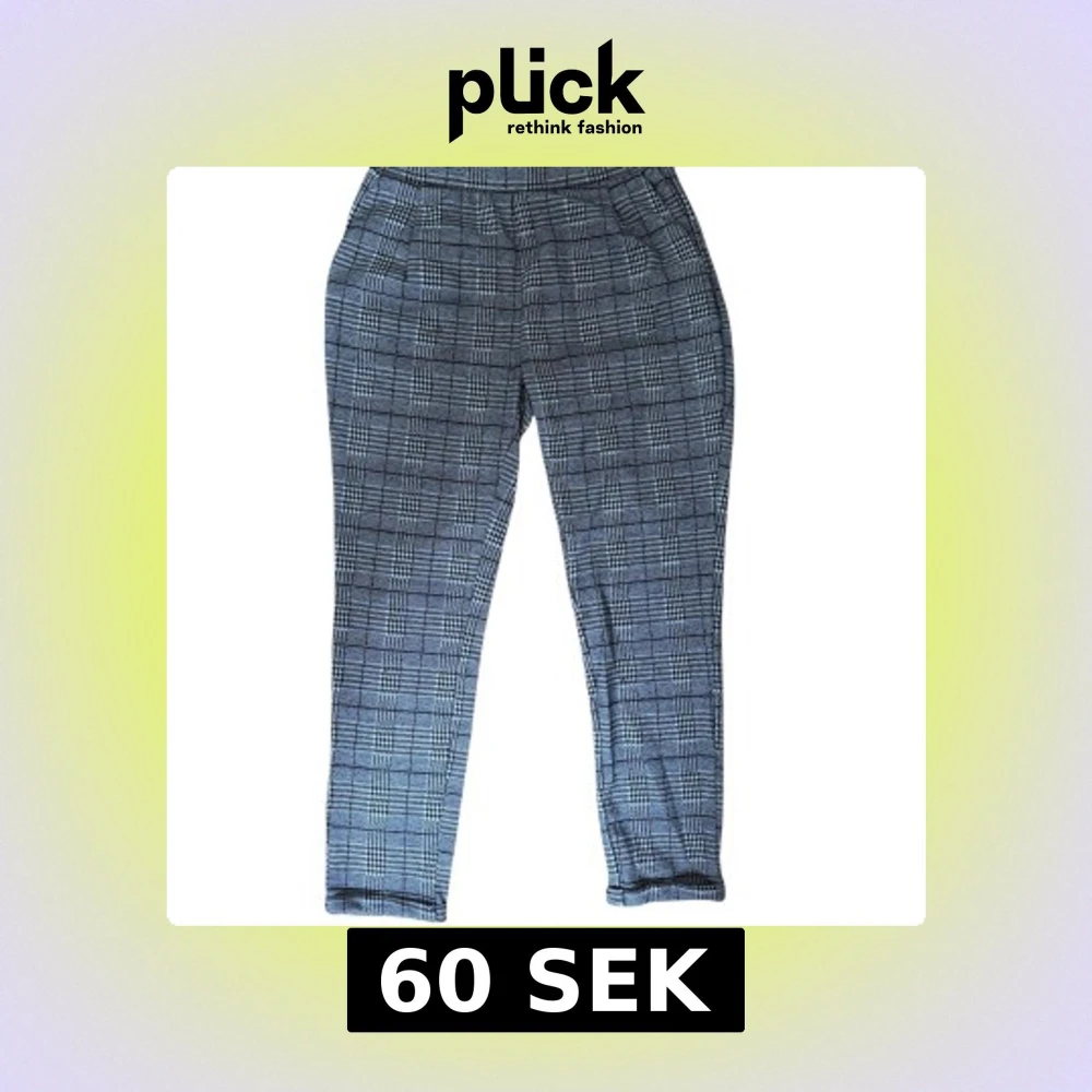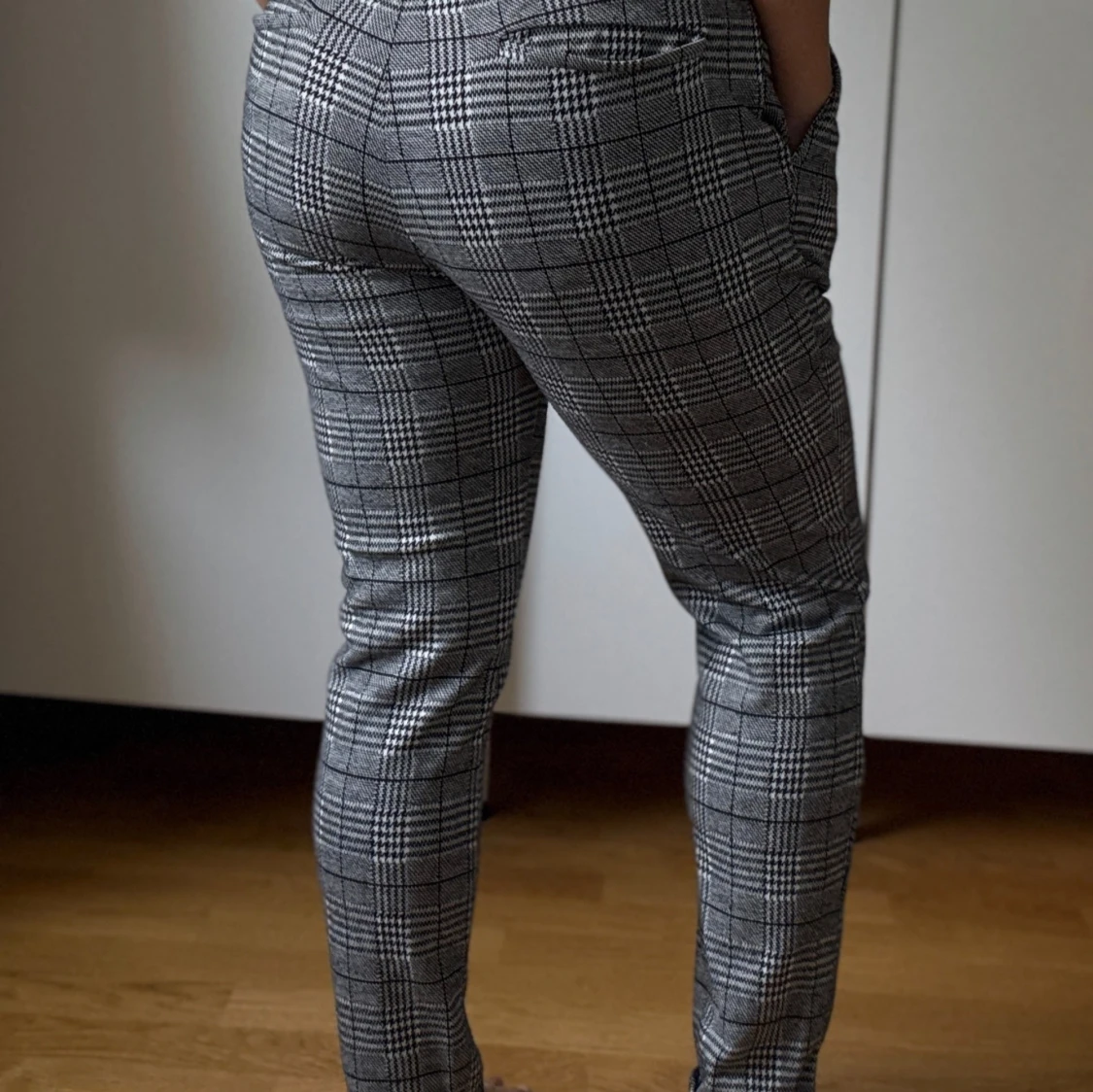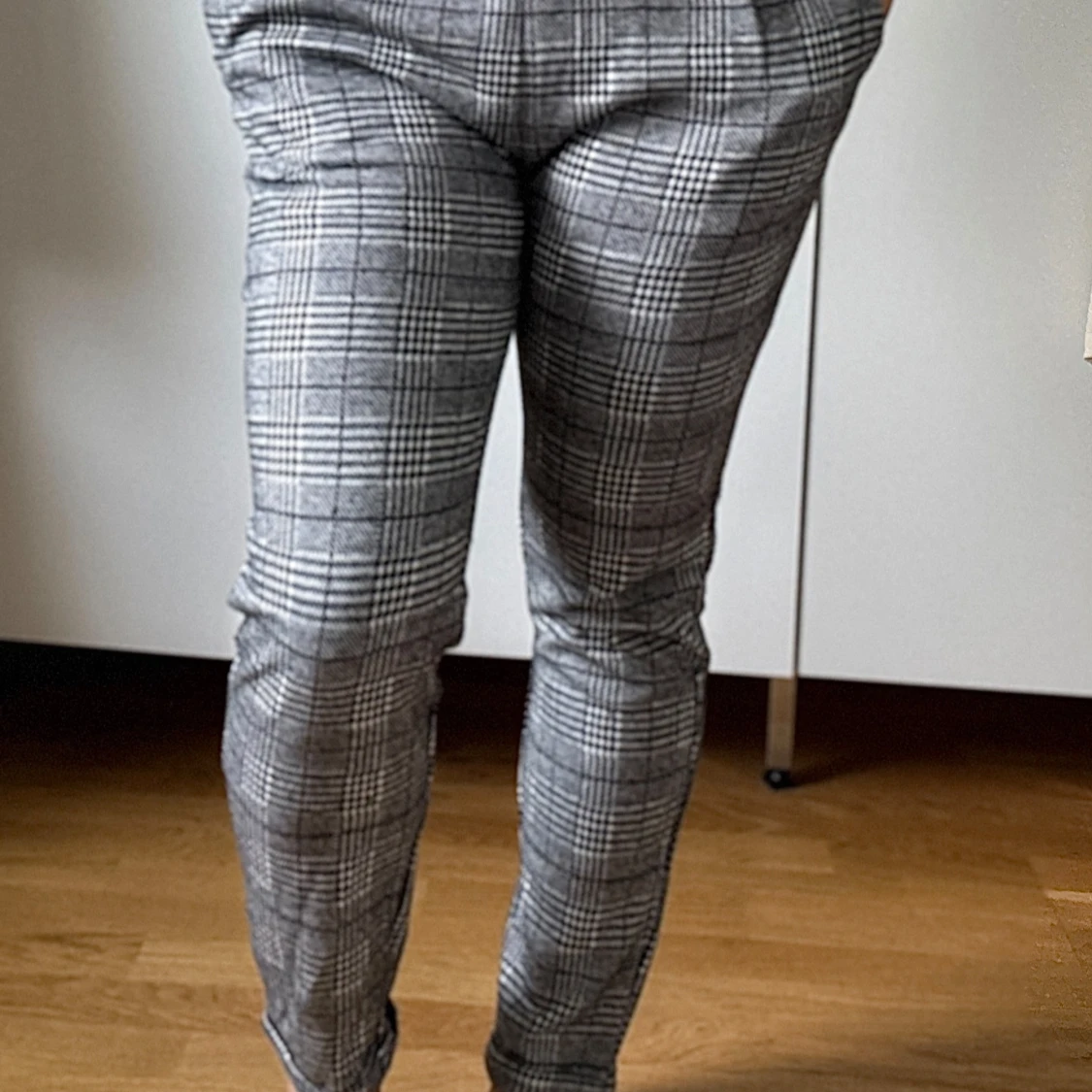 Snygga grå kostymbyxor med svartvitt rutmönster. Byxorna har hög midja, smal passform och raka ben. Perfekta för en clean och stilren look. Tillverkade i ett mjukt material som känns bekvämt hela dagen.