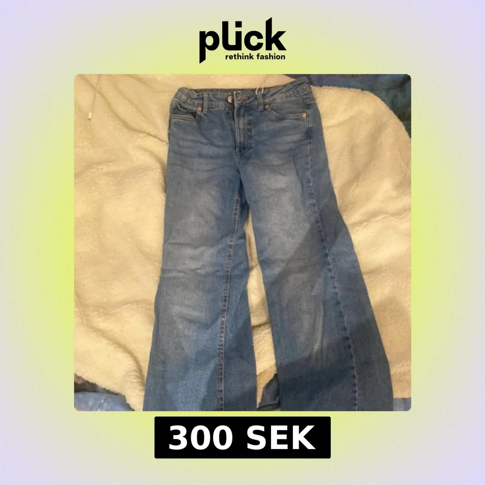 Säljer ett par klassiska blå jeansbyxor från LAB. De har en normal passform med raka ben och femficksdesign. Perfekta för en avslappnad stil.