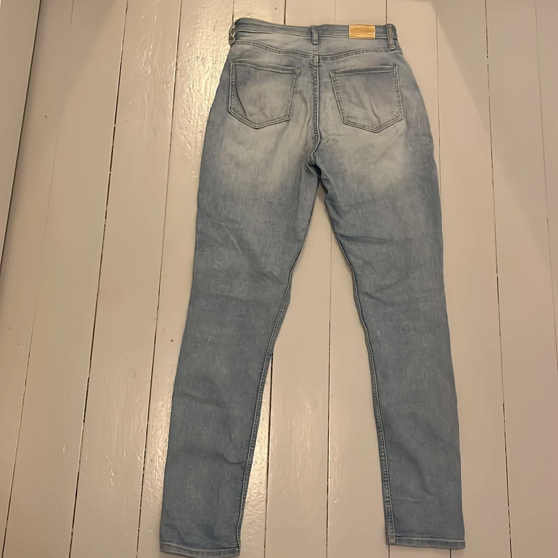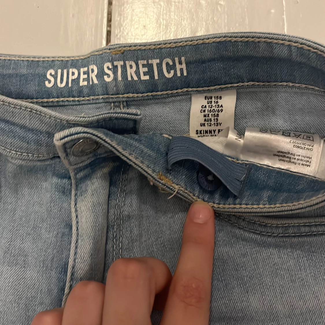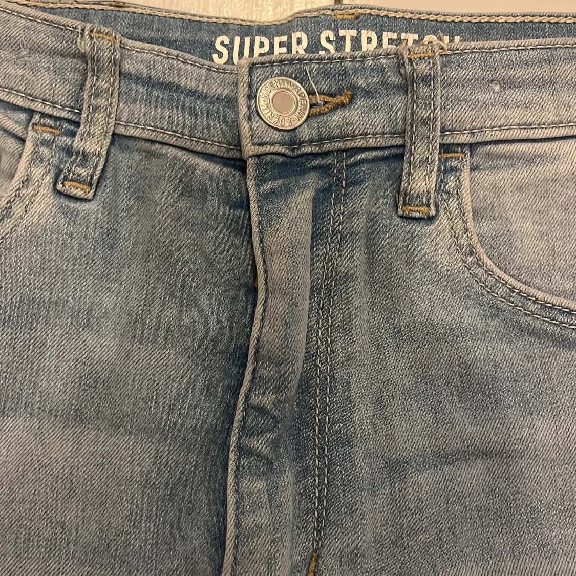 Ljusblå skinny jeans med superstretch, klassisk femficksmodell och justerbar midja. Jeansen har en snygg tvättad look och smal passform hela vägen ner. Perfekta för dig som gillar bekväma och stilrena jeans med lite extra stretch.