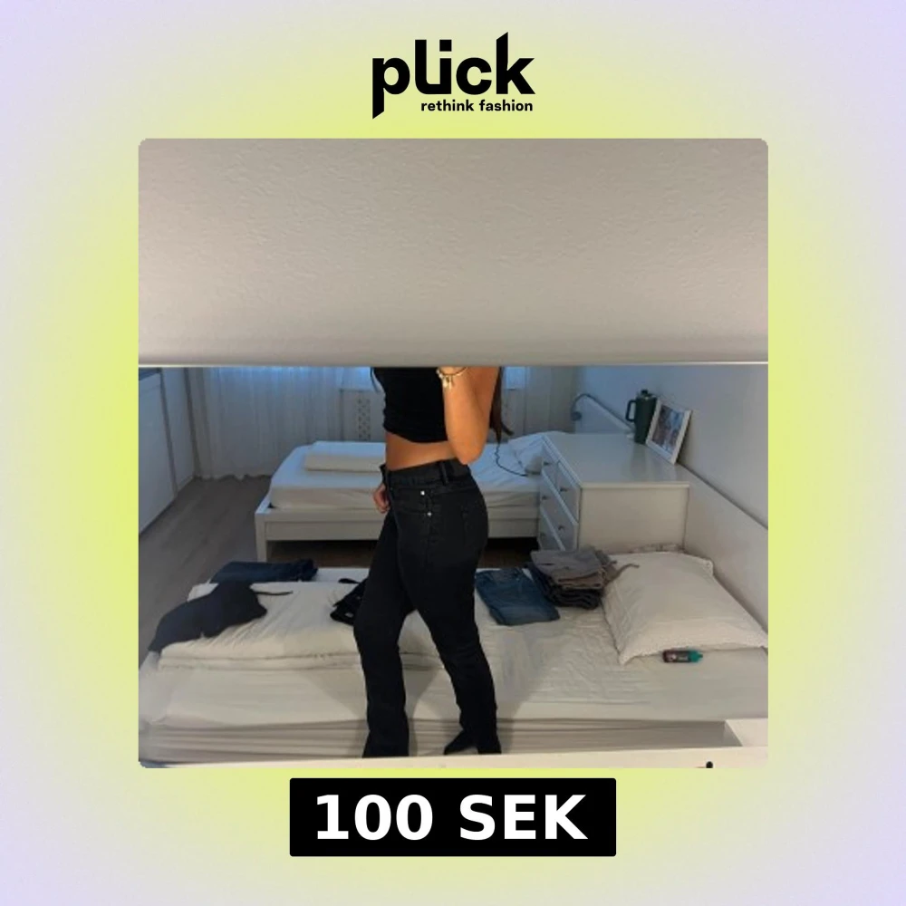 Säljer ett par svarta jeans med bootcut-modell och klassisk femficksdesign. Jeansen har normal passform och är tillverkade i ett stretchigt jeanstyg som sitter snyggt över höfterna och låren. Perfekta för dig som gillar en tidlös look med lite extra edge.