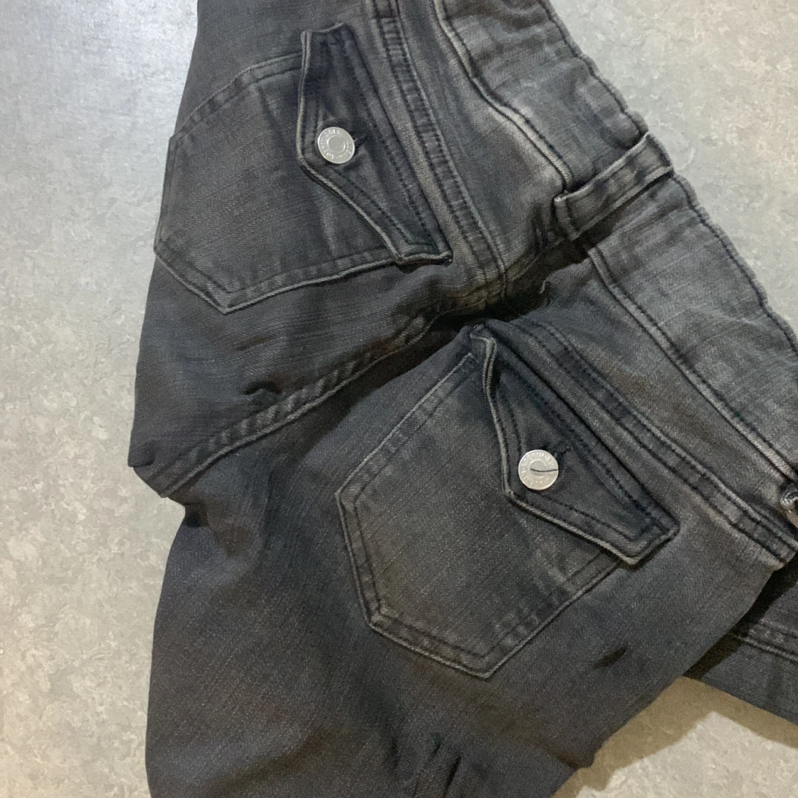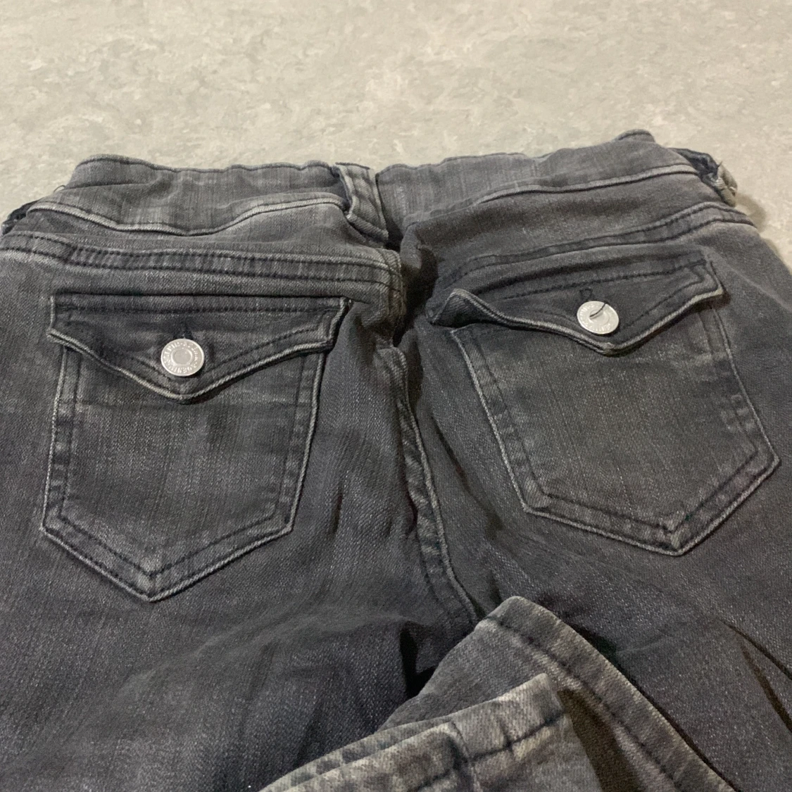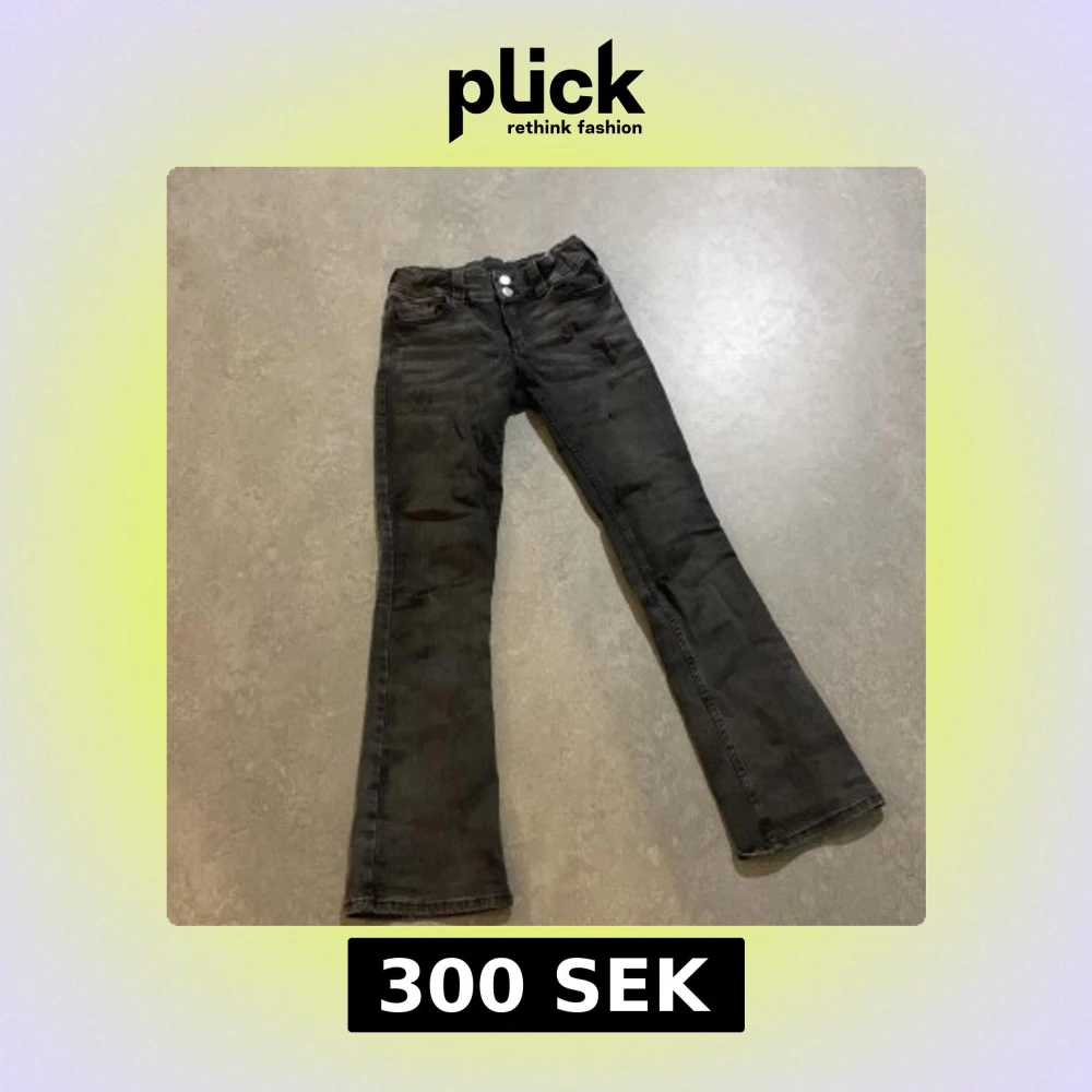 Snygga svarta jeans med bootcut passform och coola ficklock med silverknappar bak. Jeansen har klassisk femficksdesign, två knappar i midjan och lätt tvättad look. Perfekta för dig som gillar en lite retro vibe och vill sticka ut med detaljer.