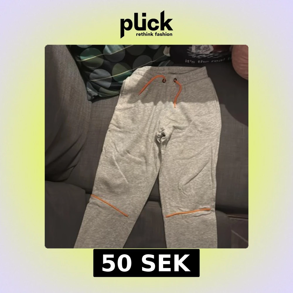Snygga grå mjukisbyxor med orange dragsko i midjan och orange detaljer vid benen. Byxorna har en relaxed fit och är perfekta för chill dagar. Tillverkade i mjukt bomullsmaterial för extra komfort.