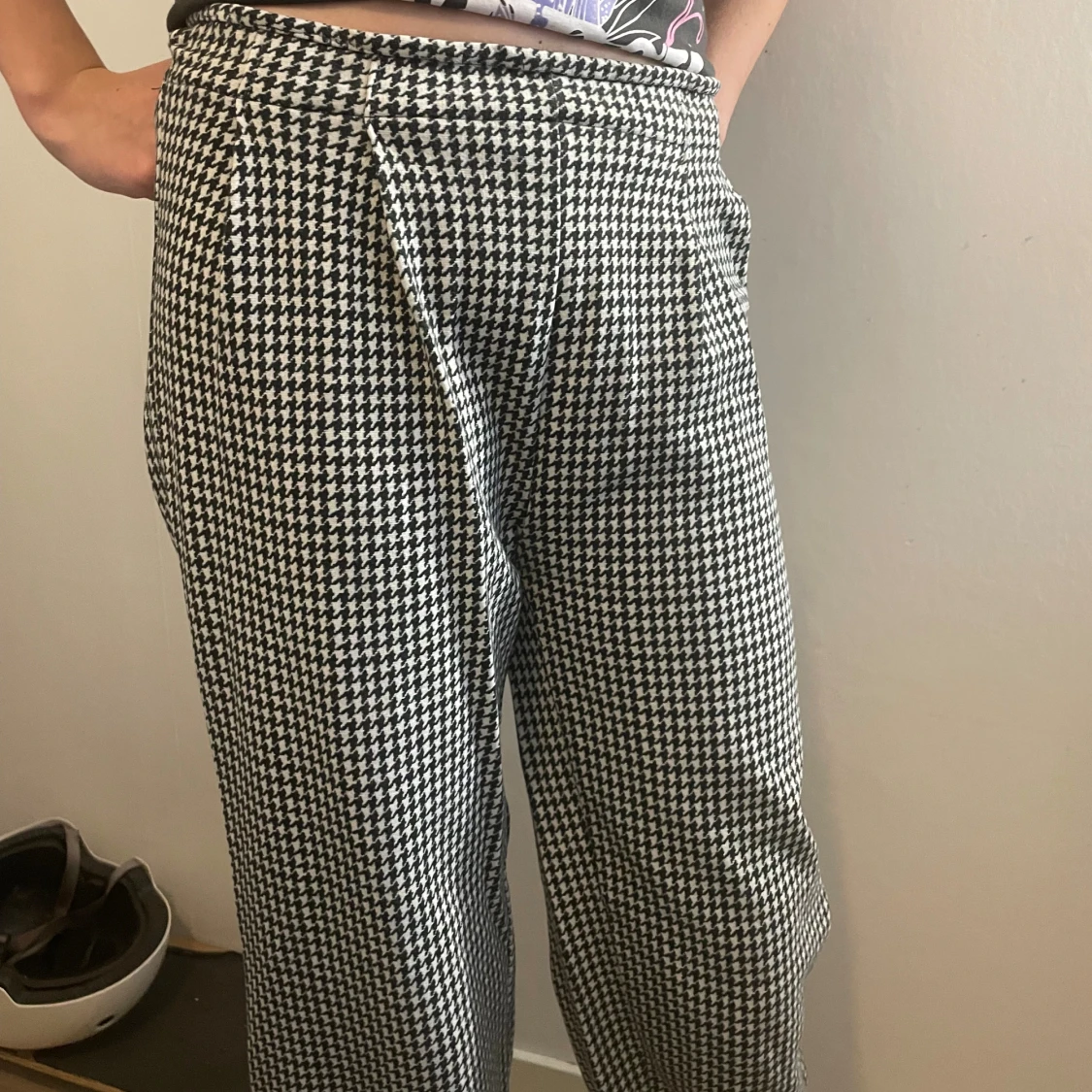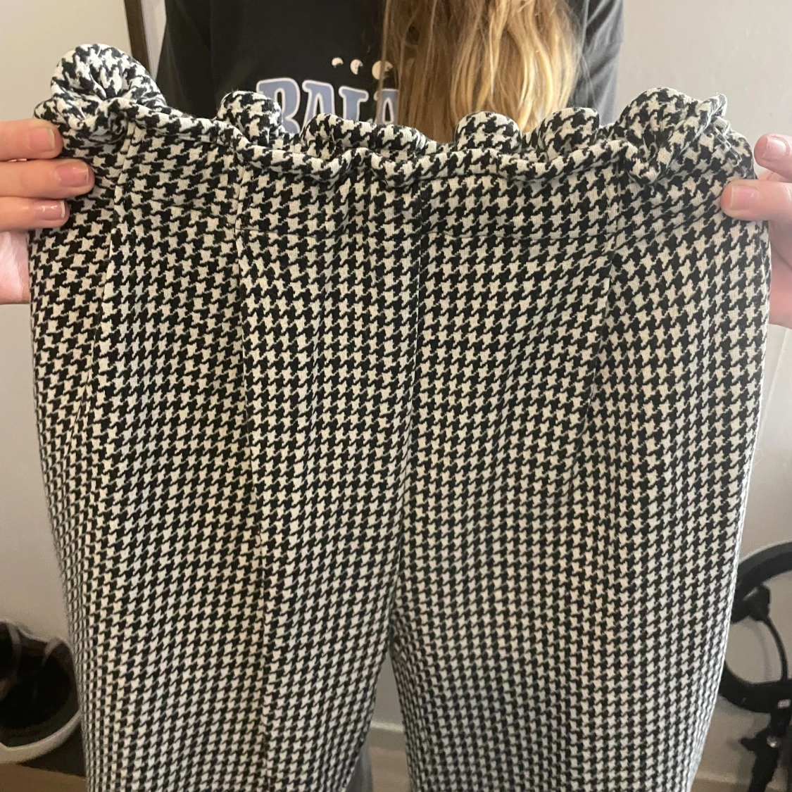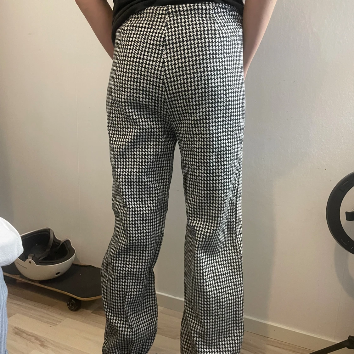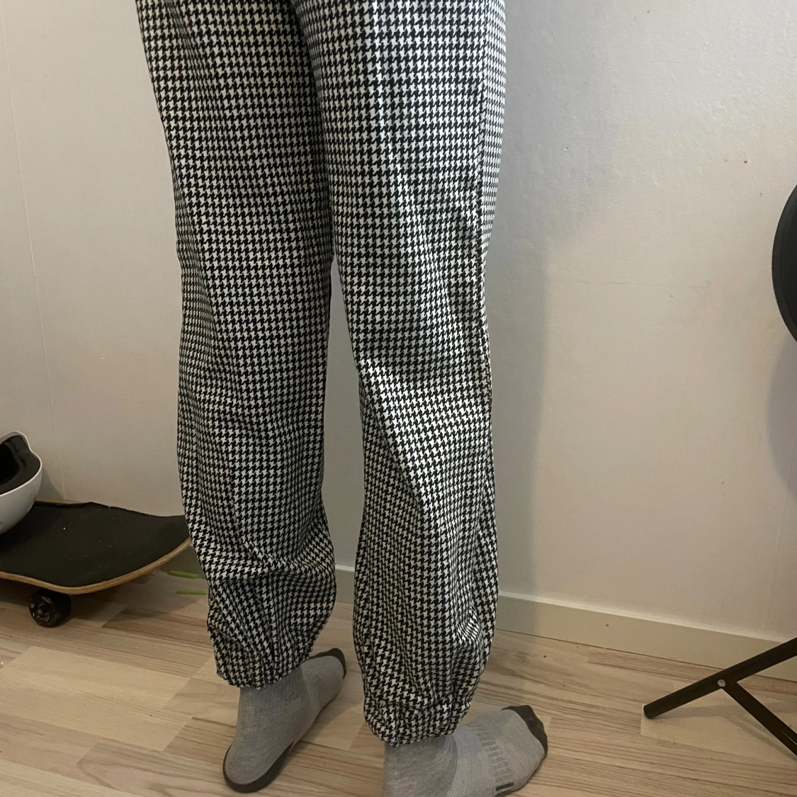 Rutiga byxor med resår i midjan och längst ner vid benen. Storleken uppskattas till 164 då storlekslapp saknas. Stretchiga och sköna!