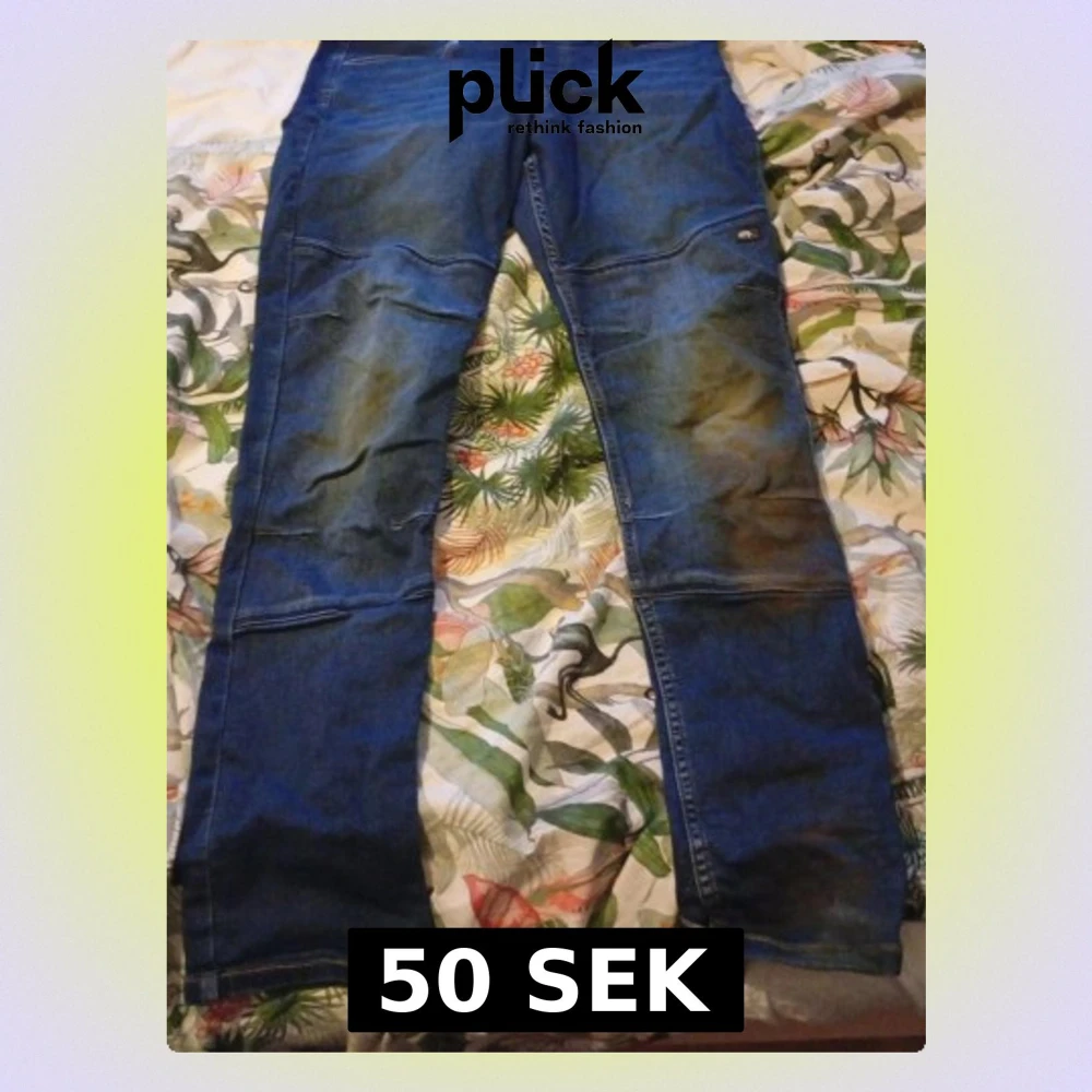 Säljer ett par blå jeans från Ossoami i storlek 164. Jeansen har klassisk femficksdesign, snygga sömmar och broderad detalj på bakfickan. Materialet är slitstarkt jeans och passformen är rak med normal midja. Perfekt för dig som gillar stilrena och tåliga jeans. Gröna på knäna men det är inget som förstör kvaliteten.