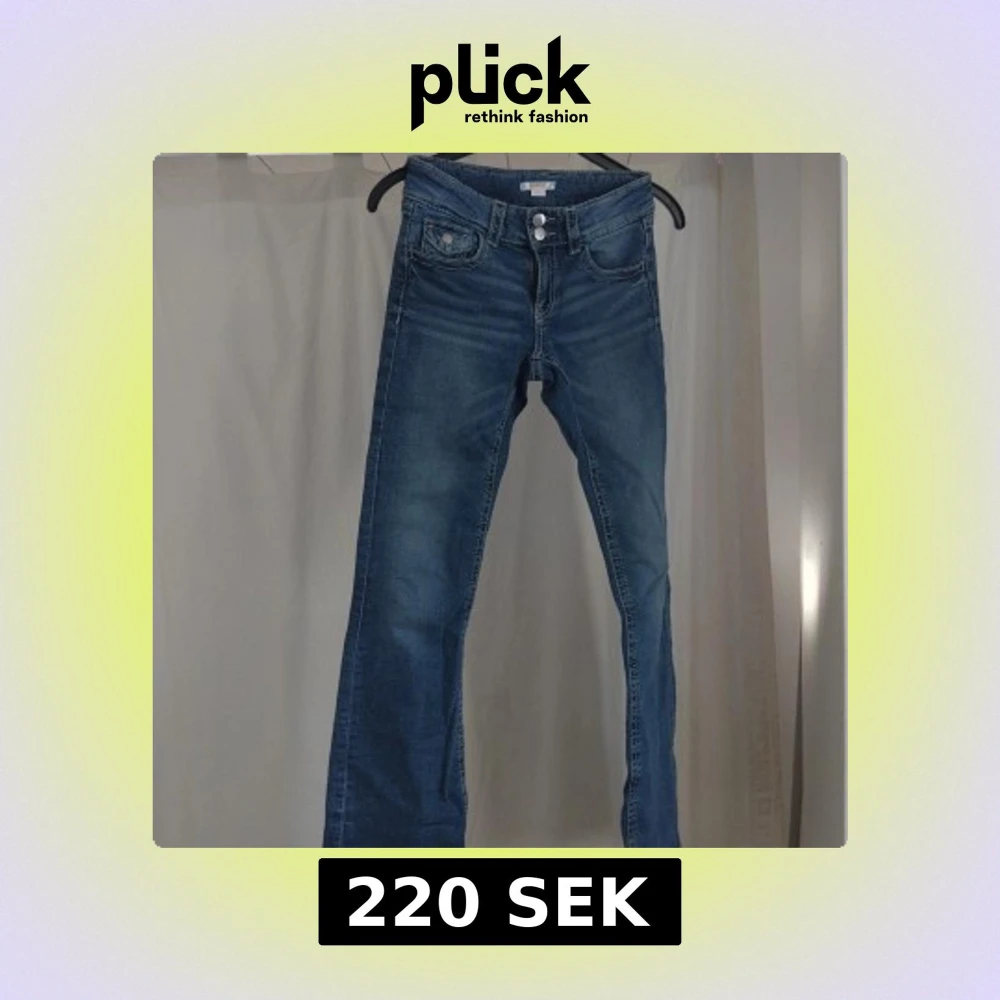 Snygga blå jeans med bootcut passform och dubbla knappar i midjan. Klassisk femficksmodell med lätt slitning och raka ben som får en liten utsvängning nertill. Perfekta för dig som gillar en tidlös men trendig look. Från Gina youth stl 164