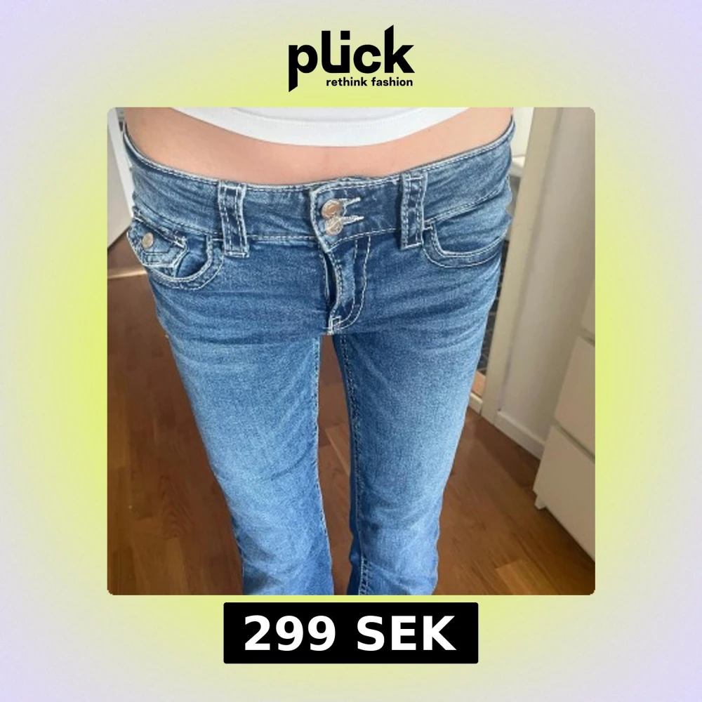 Säljer ett par snygga jeans med låg midja. Jeansen har dubbla knappar framtill, tydliga vita sömmar. Säljer för dem inte kommer till andvändning längre🥰Midjemått=36cm