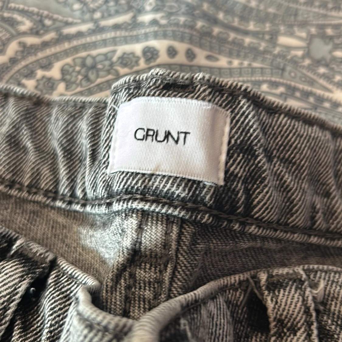 Snygga grå jeansbyxor från Grunt med en klassisk straight passform. De har en midwaist design och är perfekta för en avslappnad stil. Byxorna har både knappar och dragkedja framtill.