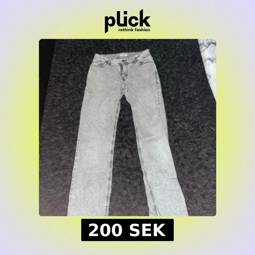 Snygga grå jeansbyxor med en klassisk design. De har en dragkedja och knappar framtill. Perfekta för en avslappnad stil.