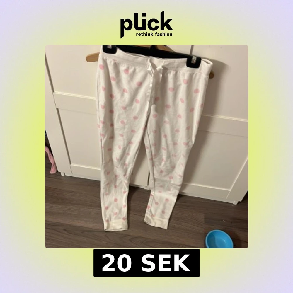Mysiga vita mjukisbyxor från Kappahl med söta rosa prickar. Byxorna har en bekväm passform och ett knytband i midjan för justerbarhet. Perfekta för en avslappnad dag hemma.