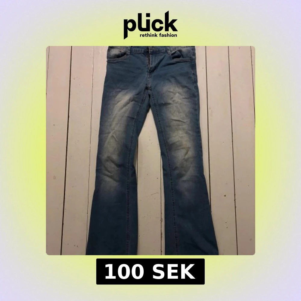 Snygga blå jeans med bootcut passform och coola slitningar framtill. Klassisk femficksmodell med dragkedja och knapp. Perfekta för dig som gillar en avslappnad och trendig stil.