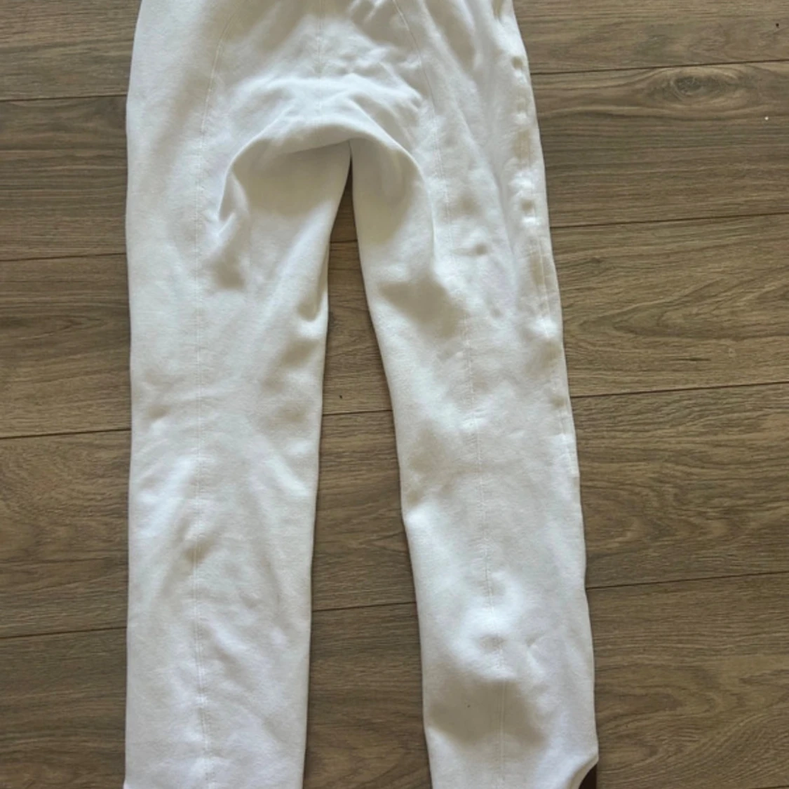 Snygga vita knäskodda ridbyxor som passar perfekt till träning och tävling. Stretchigt material som ger bra passform och komfort. Perfekta för dig som vill sticka ut lite extra i stallet.