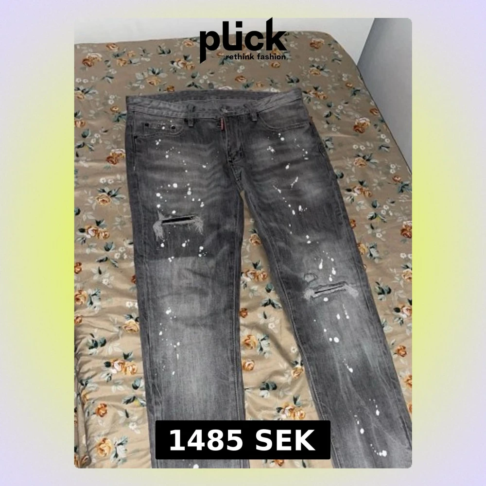 Snygga grå jeans från Dsquared2 med coola vita färgstänk och slitna detaljer på benen. Modellen har klassisk femficksdesign, normal passform och raka ben. Jeansen är tillverkade i bomull och har en urban vibe som sticker ut.