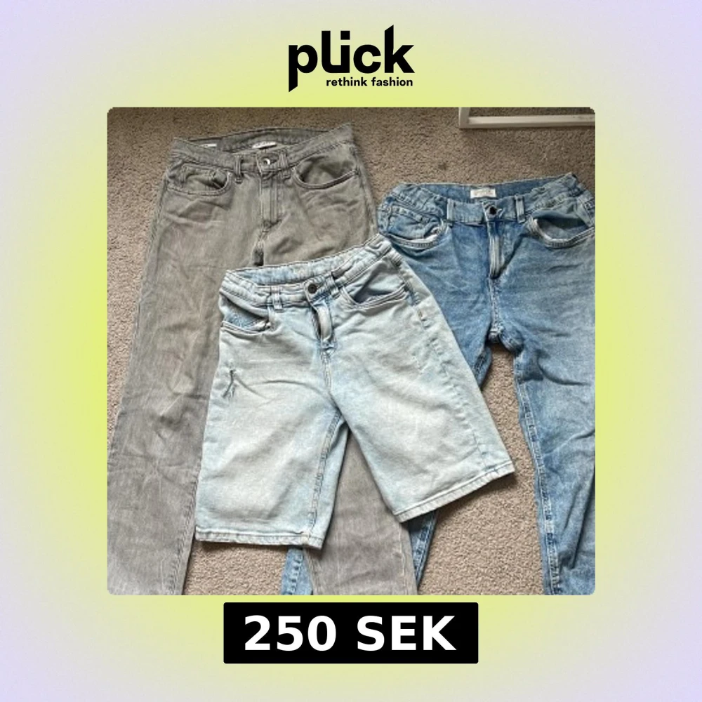 Säljer ett par grå jeans från Vaillent i storlek XS. Klassisk femficksmodell med raka ben och normal passform. Jeansen har en snygg tvättad look och är tillverkade i bomullstyg med dragkedja. Blåa jeans från Lindex , baggy med sidfickor, också ett par lab jeans shorts