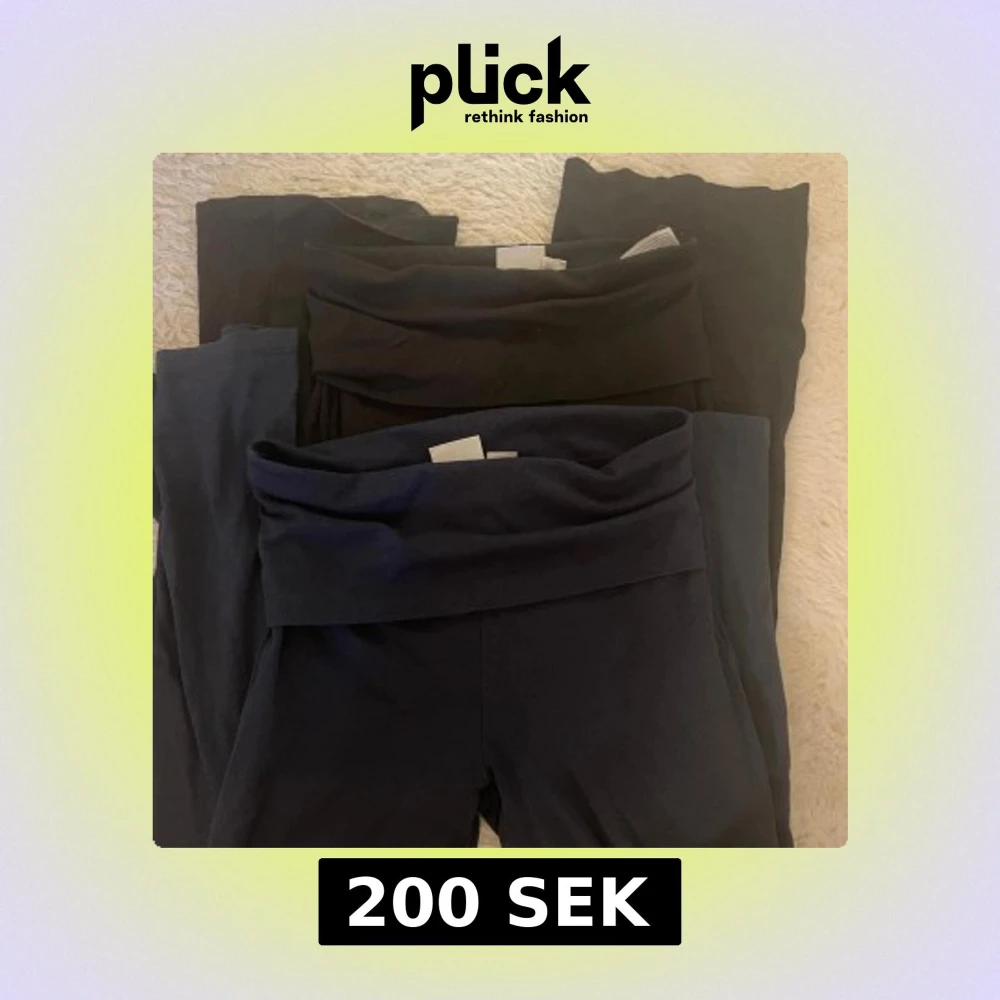 Två par mjuka leggings från Gina Tricot i svart och mörkblått. Båda har bred, vikt linning och är tillverkade i stretchig bomullsblandning. Perfekta för chill dagar eller när du vill ha något bekvämt på dig.kom privat ifall ni vill ha fler bilder