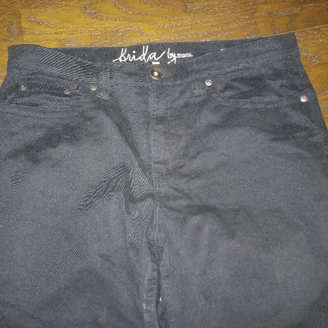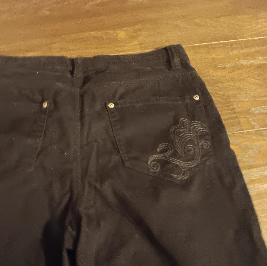 Svarta lågmidjade jeans från kappahl. Någon slags mönster på bakfickorna. Säljer för att de ej passar mig längre. Något mjukare jeanstyg.