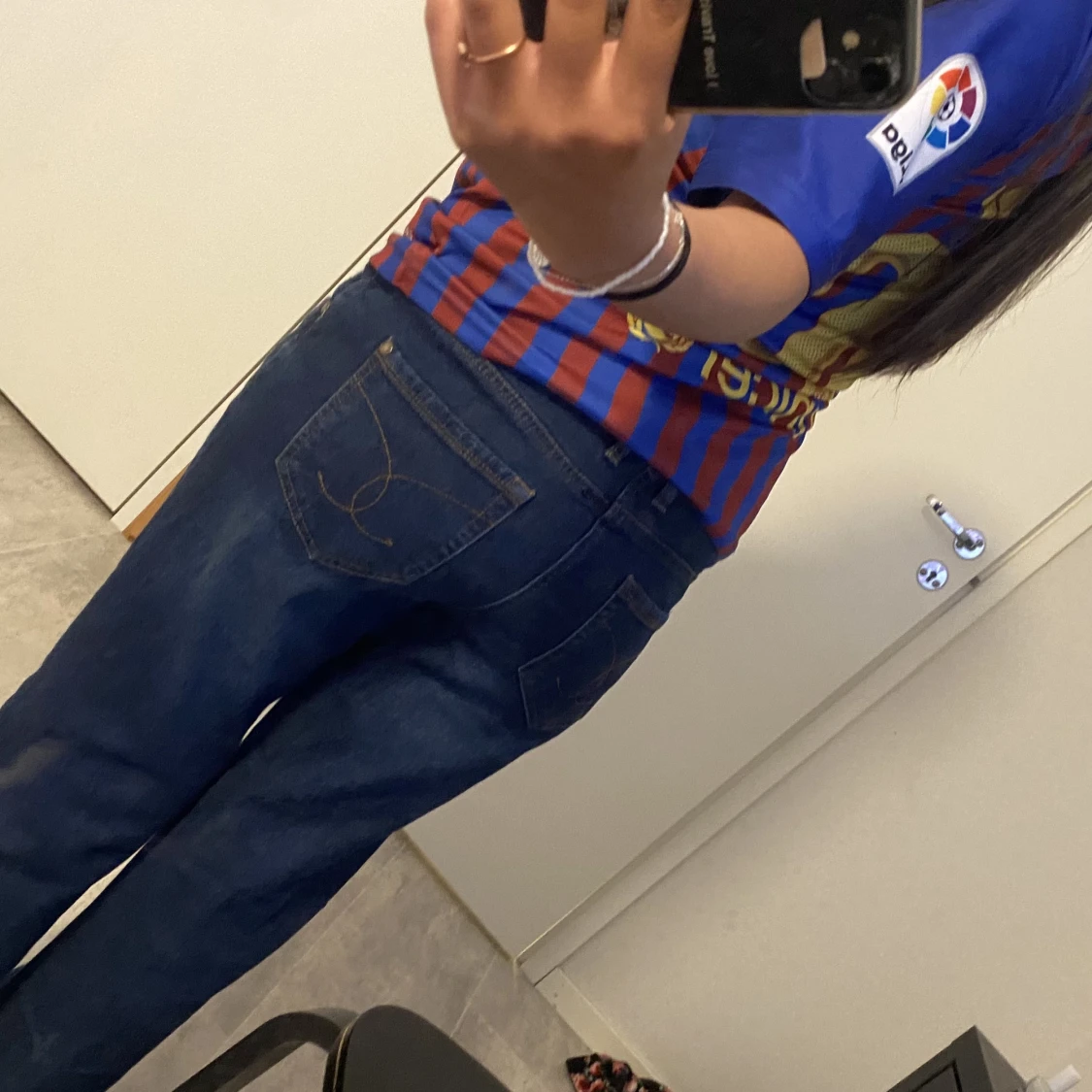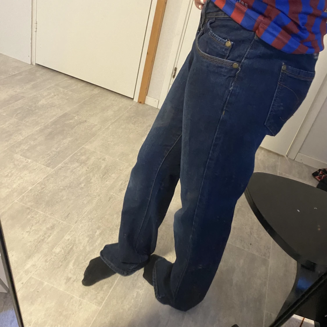 Super fina Lågmidjade jeans som var lite för stora och långa på mig som är 160cm ungefär. Pris kan diskuteras och tveka inte på att ställa frågor midjemåttet är 40 cm ungefär, tvärs över.