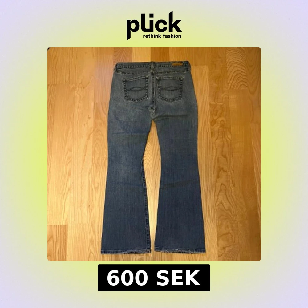 Snygga blå vintage lågmidjade bootcut jeans från Abercrombie & Fitch med klassisk femficksdesign. Jeansen har en stretchig passform och är perfekta för en avslappnad stil. De har en knapp- och dragkedjestängning framtill. Midjemått: 36cm rakt över. Innerbensmått: 75cm