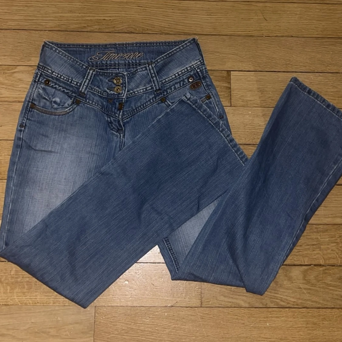 Ett par jätte snygga lågmidjade bootcut jeans som är köpta i london💗 byxorna är i jätte bra skick(ser helt nya ut) och har coola detaljer på fickorna🙌 Pris går såklart att diskutera💋