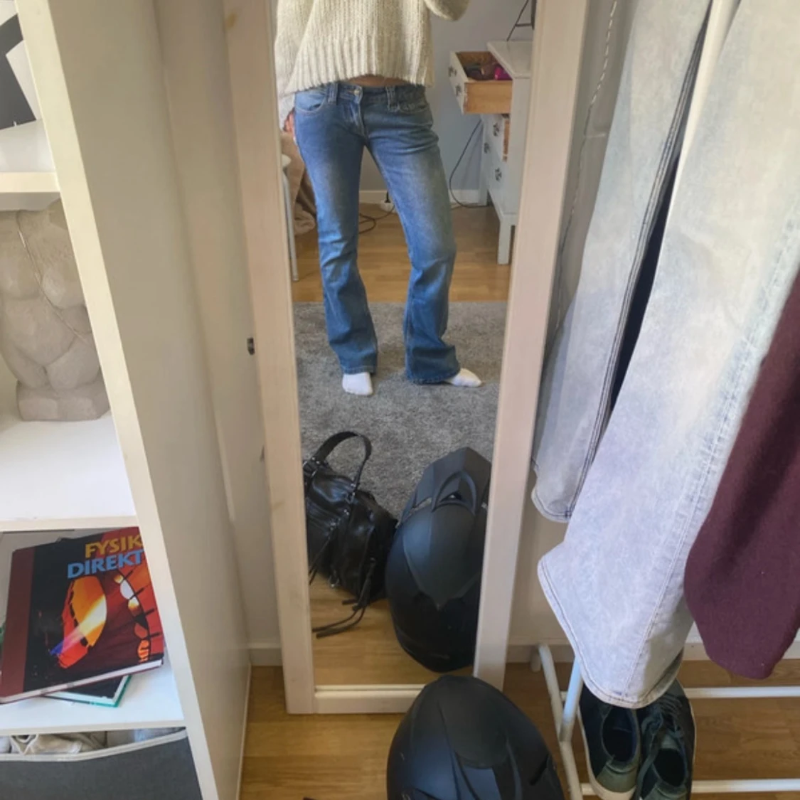 Säljer ett par y2k blå bootcut jeans från J. Galt i storlek S. Snygg vintage passform. Snygg tvätt och sköna att bära till vardags. Bra material också!