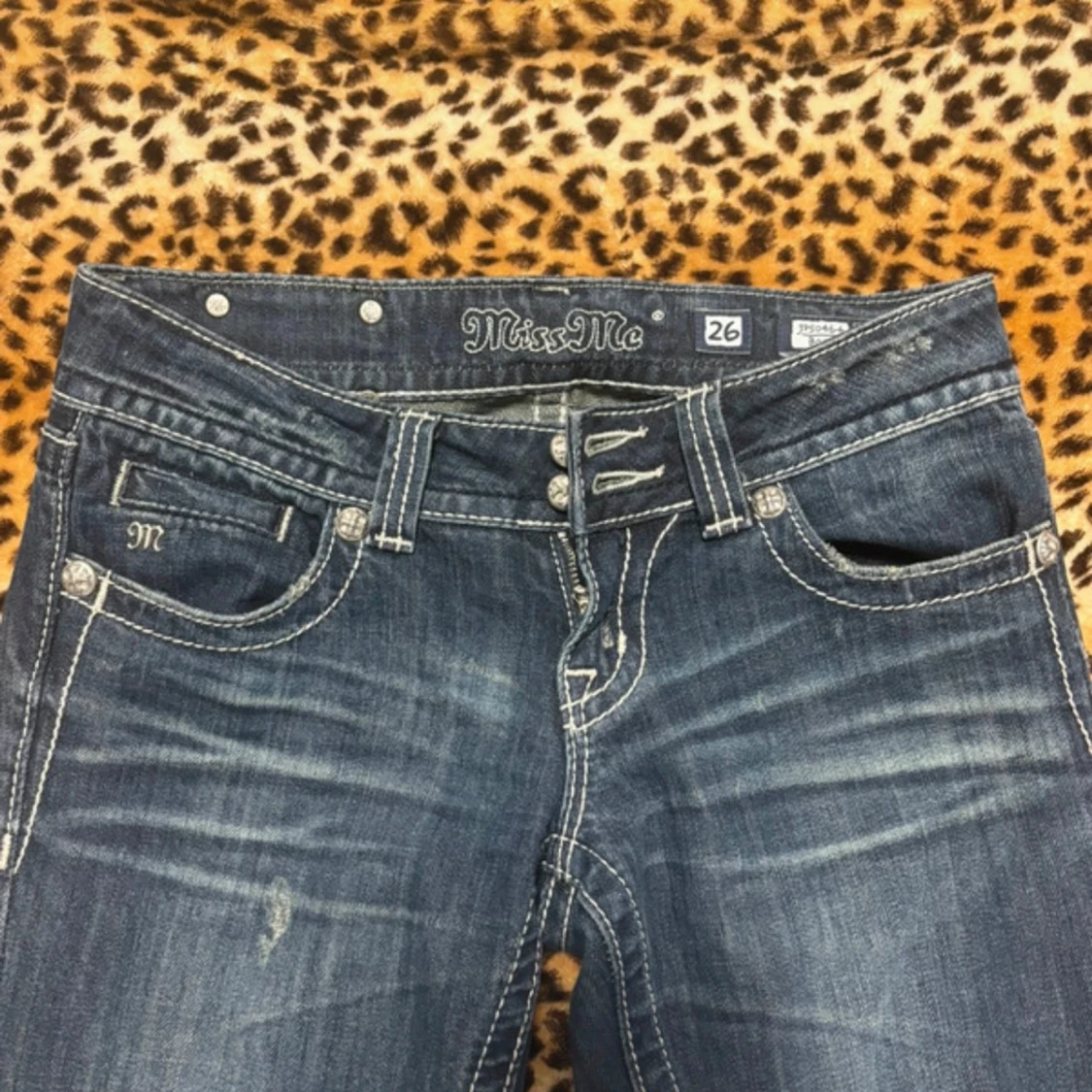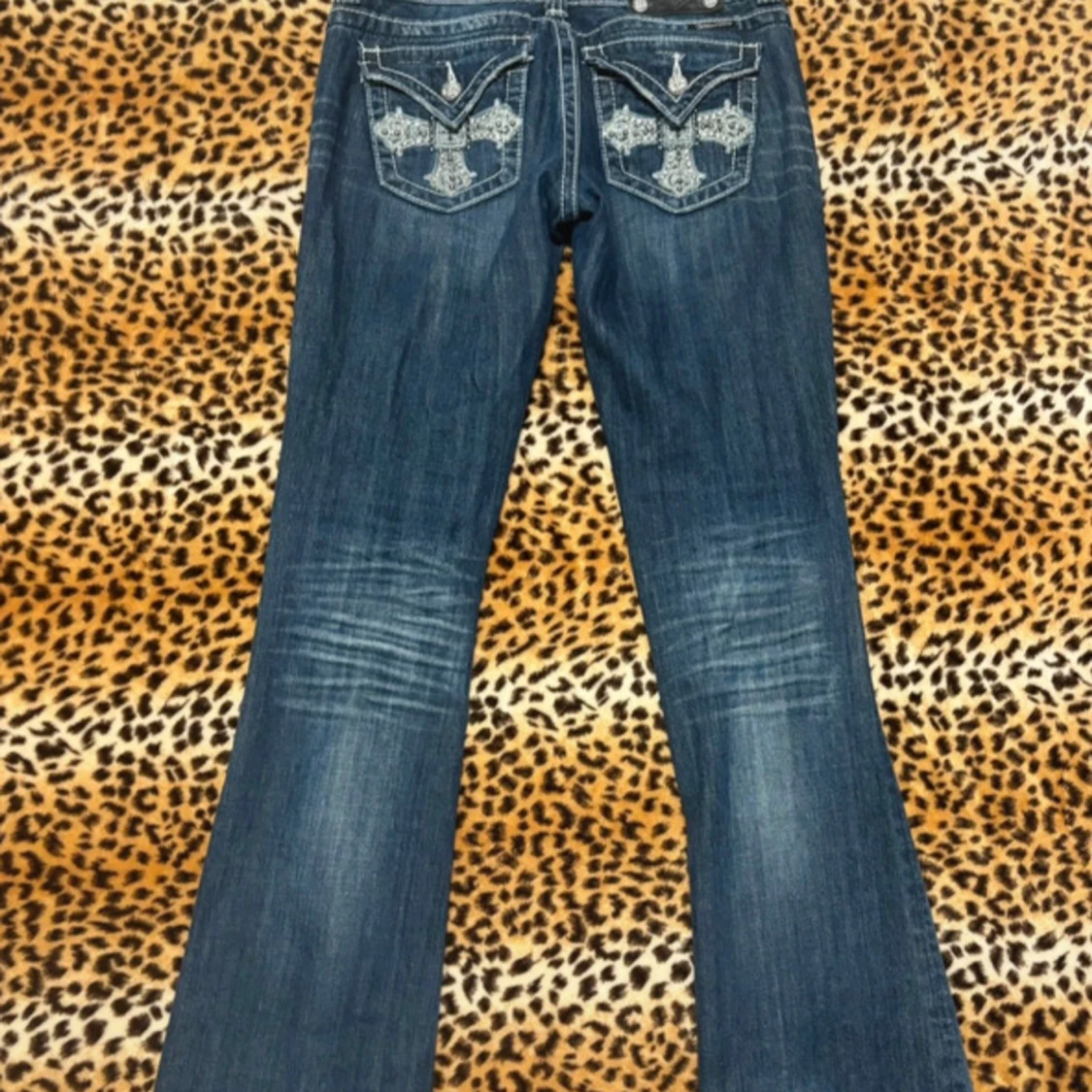 ✰*฿✩‧₊˚ läs gärna köpvillkoren & beskrivningen innan superfina lågmidjade bootcut jeans med cross pockets från miss me, passar ej så inga bilder på. innerben: 77 cm och midja: 37 cm. mycket gott skick! skriv vid frågor