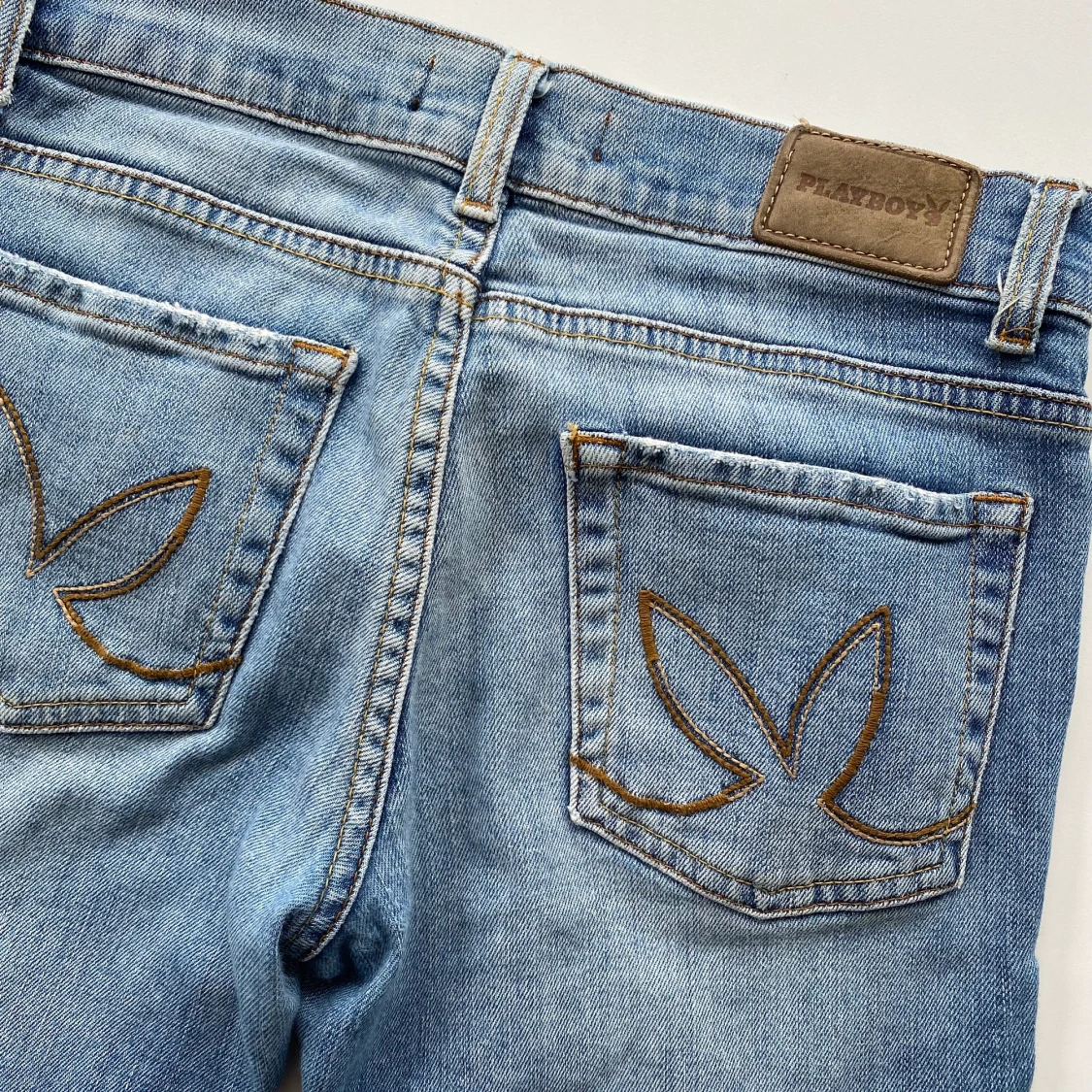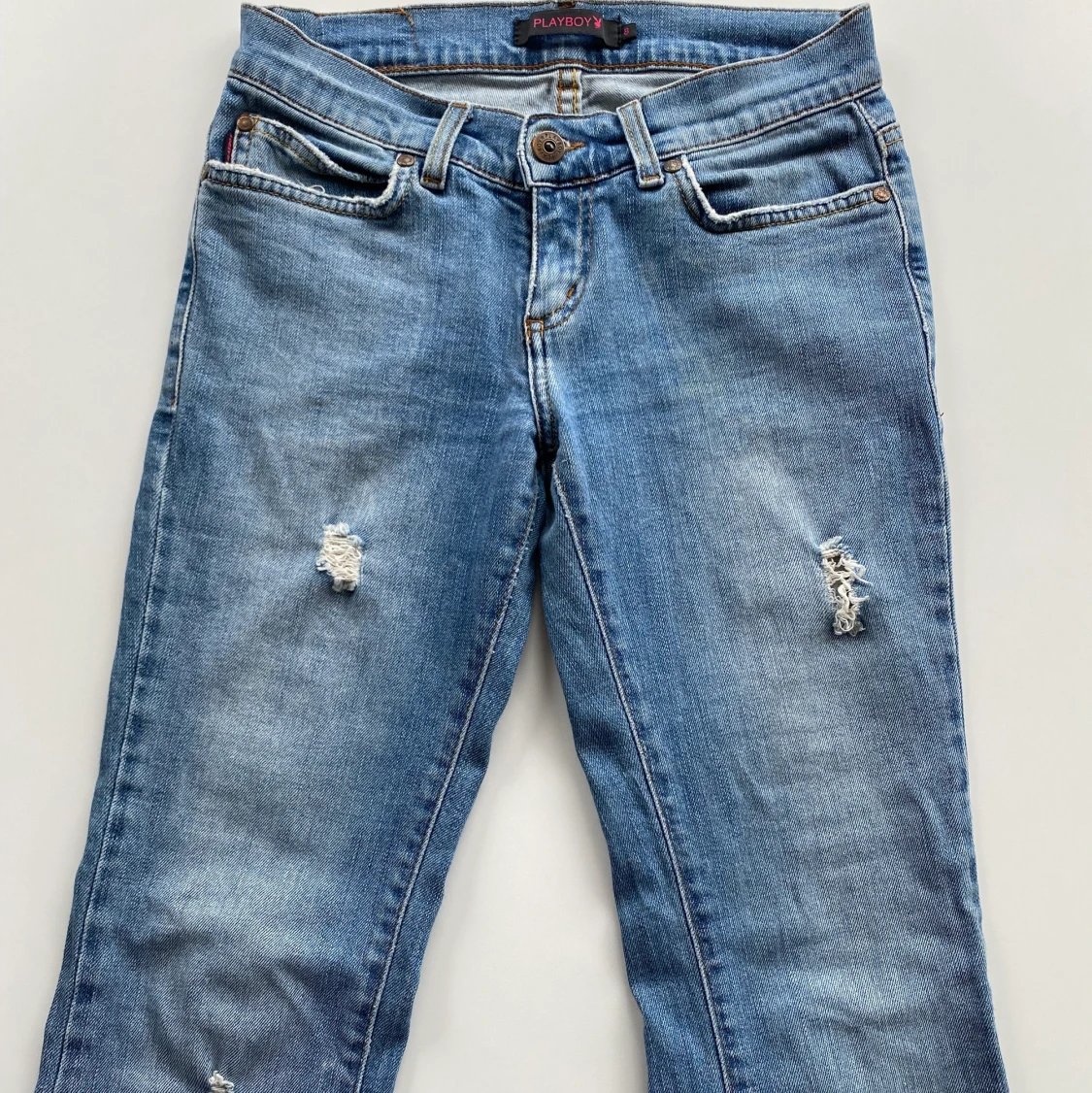 Jag säljer dessa super snygga lågmidjade playboy jeans i bootcut modell då dem tyvärr inte passade mig. De är i storlek 8 vilket motsvarar ungefär en storlek 34, men jag skulle säga att de passar en 32-36. Jag är 166 och de passar perfekt i längden. 💕