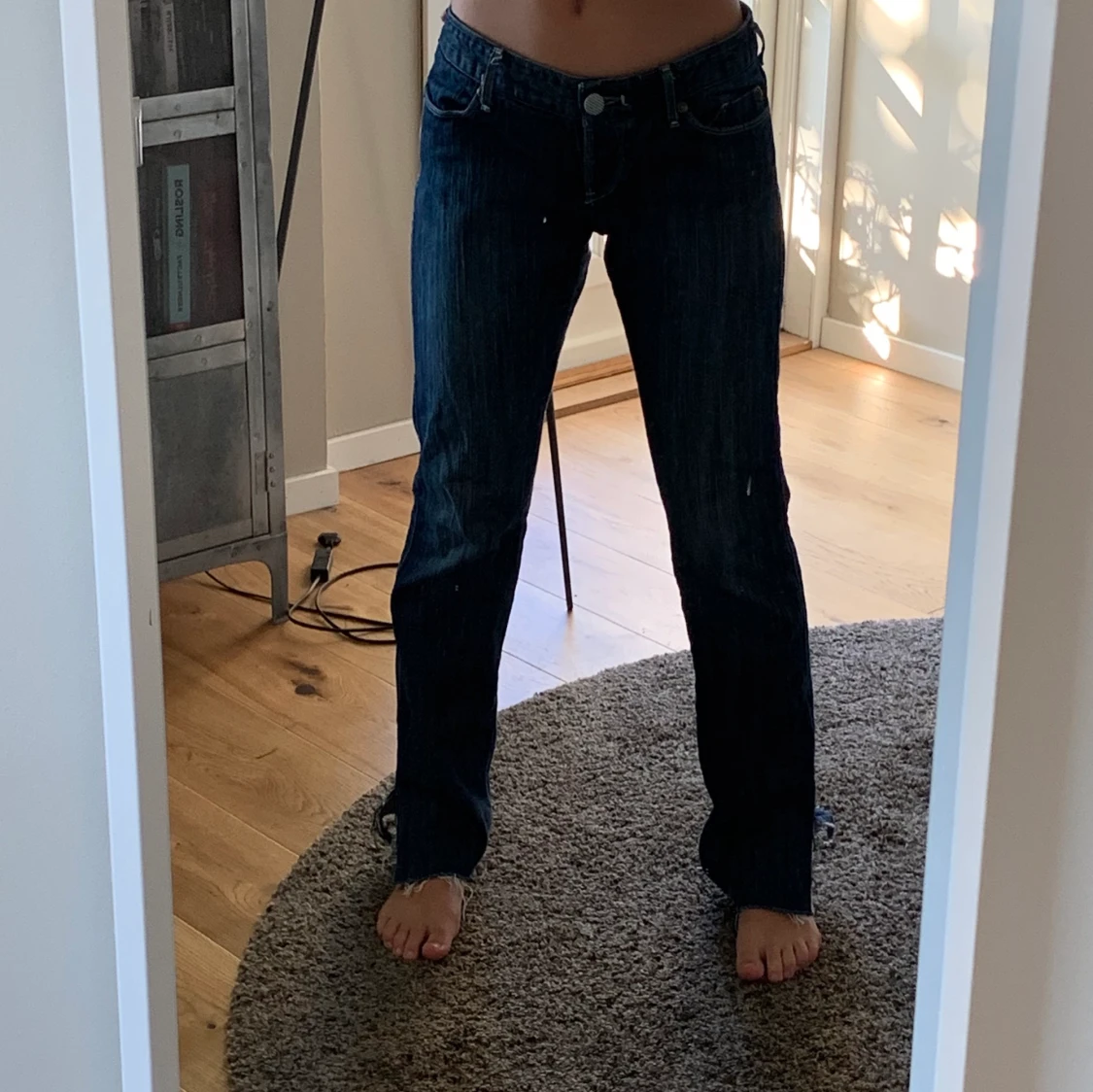 Snygga trendiga jeans, ungefär storlek s, men stora på mig eftersom jag har xs. Jag har gjort en egen kort slits vid slutet av jeansen som ger dom en trendigare look. Jag är 163 cm lång. Om du är intresserad så är det bara att kontakta❤️