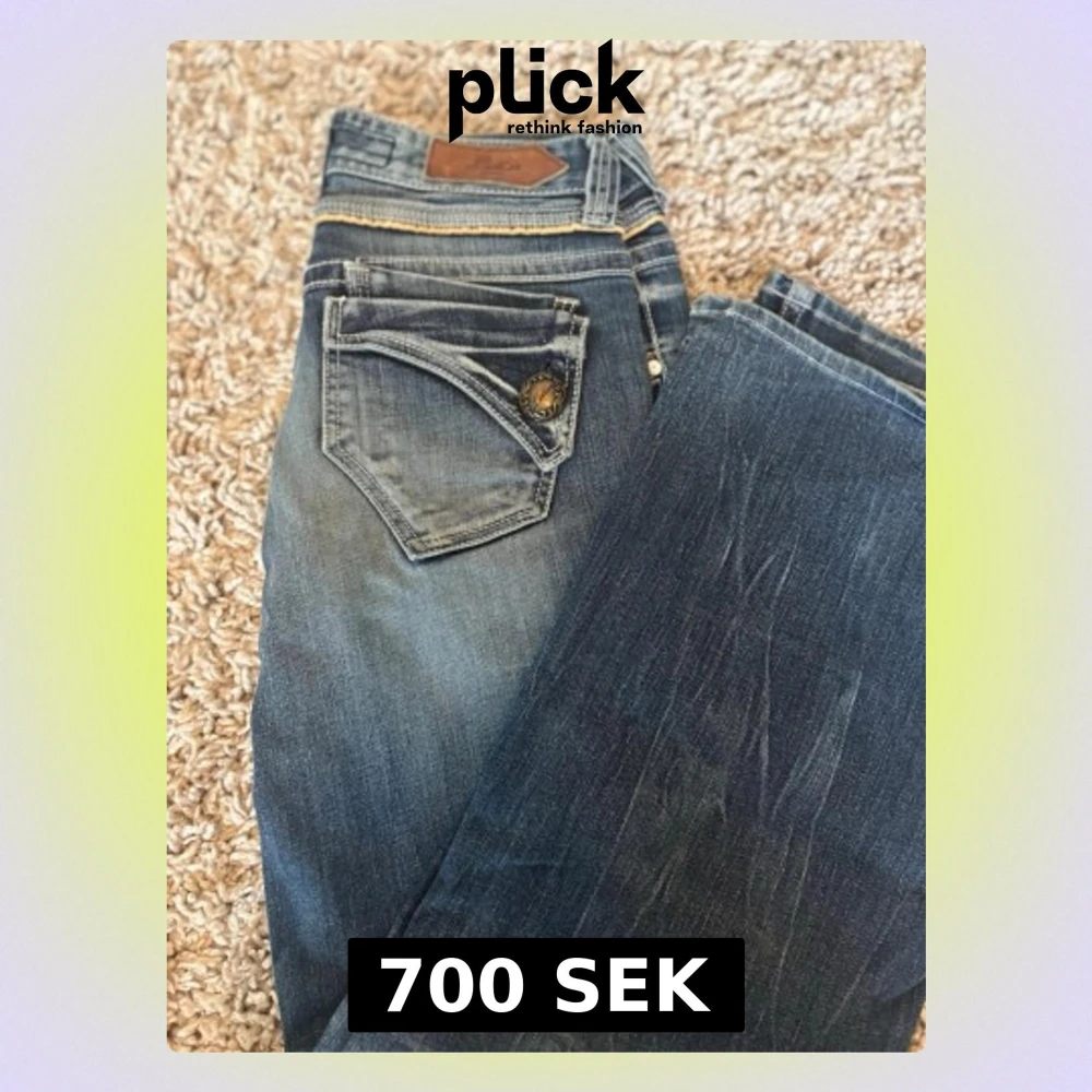 Blåa boorcut jeans från Back Number med fina beige detaljer vid fram fickorna. Jeansen har snygga Knappfickor som är användbara. Mått: Midjemått tvärs över knappen 40cm. Från grenen upp till linningen 21cm. Innebenslängden 74cm. Yttebenslängden 96cm. Hör av dig om du har frågor eller funderingar❤️