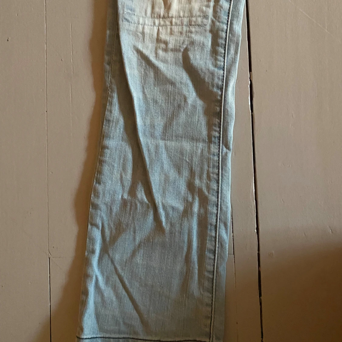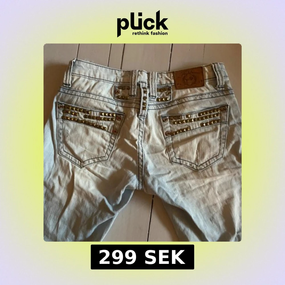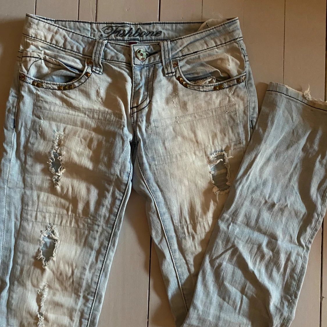 Ascoola jeans med nitar och slitningar! Storlek 25, De är väldigt lågmidjade och straight leg🩵pris kan diskuteras o skriv för fler bilder!