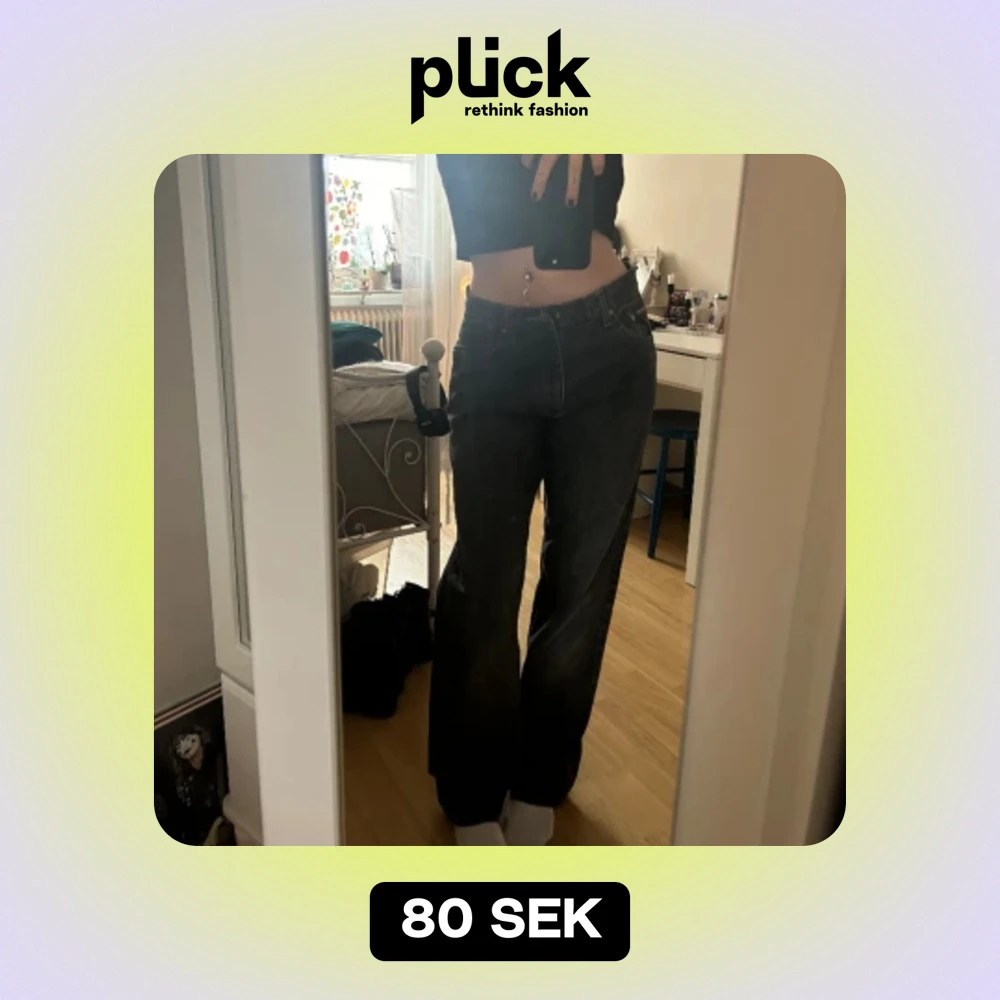 Snygga svarta jeans köpta på humana men har inte kommit till användning då dom är stora i midjan på mig och inte riktigt är min stil bara💞💞 jag är 160! Knappen är borta vid skrevet men jag skulle kunna sy fast de för 10kr extra‼️