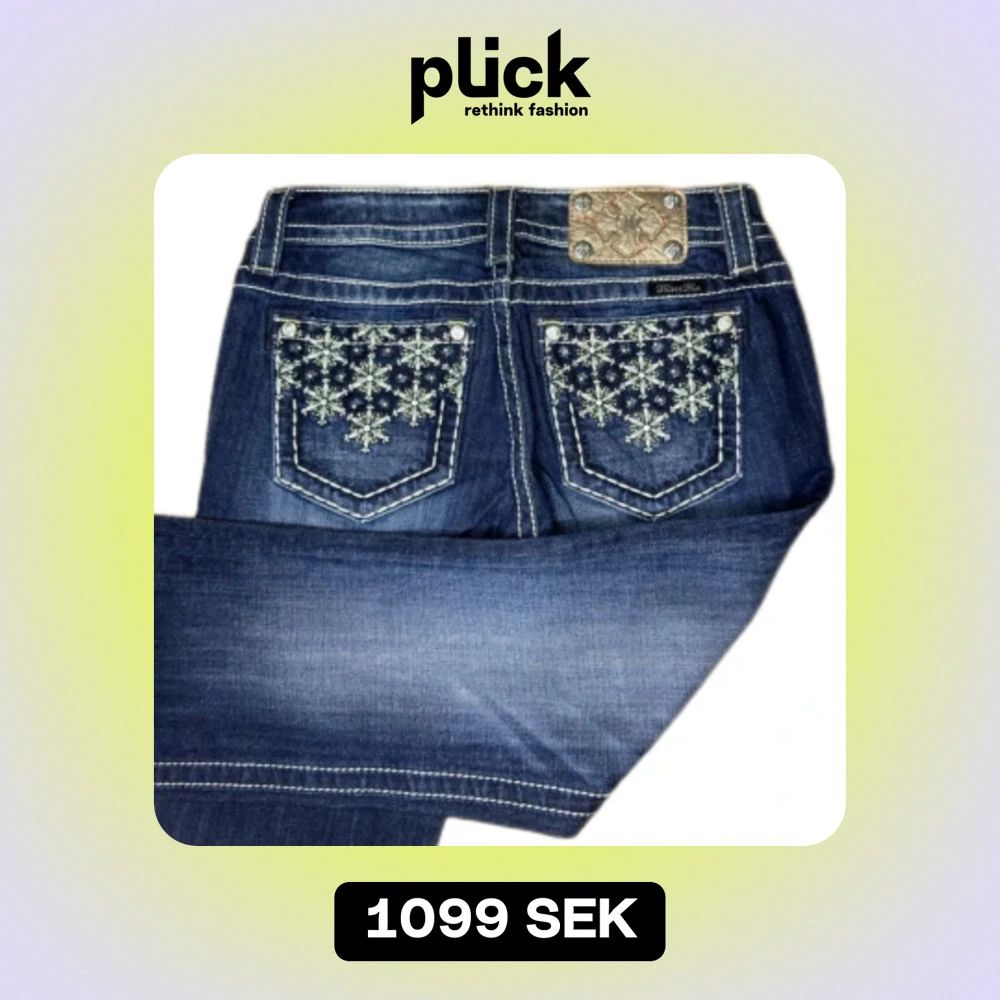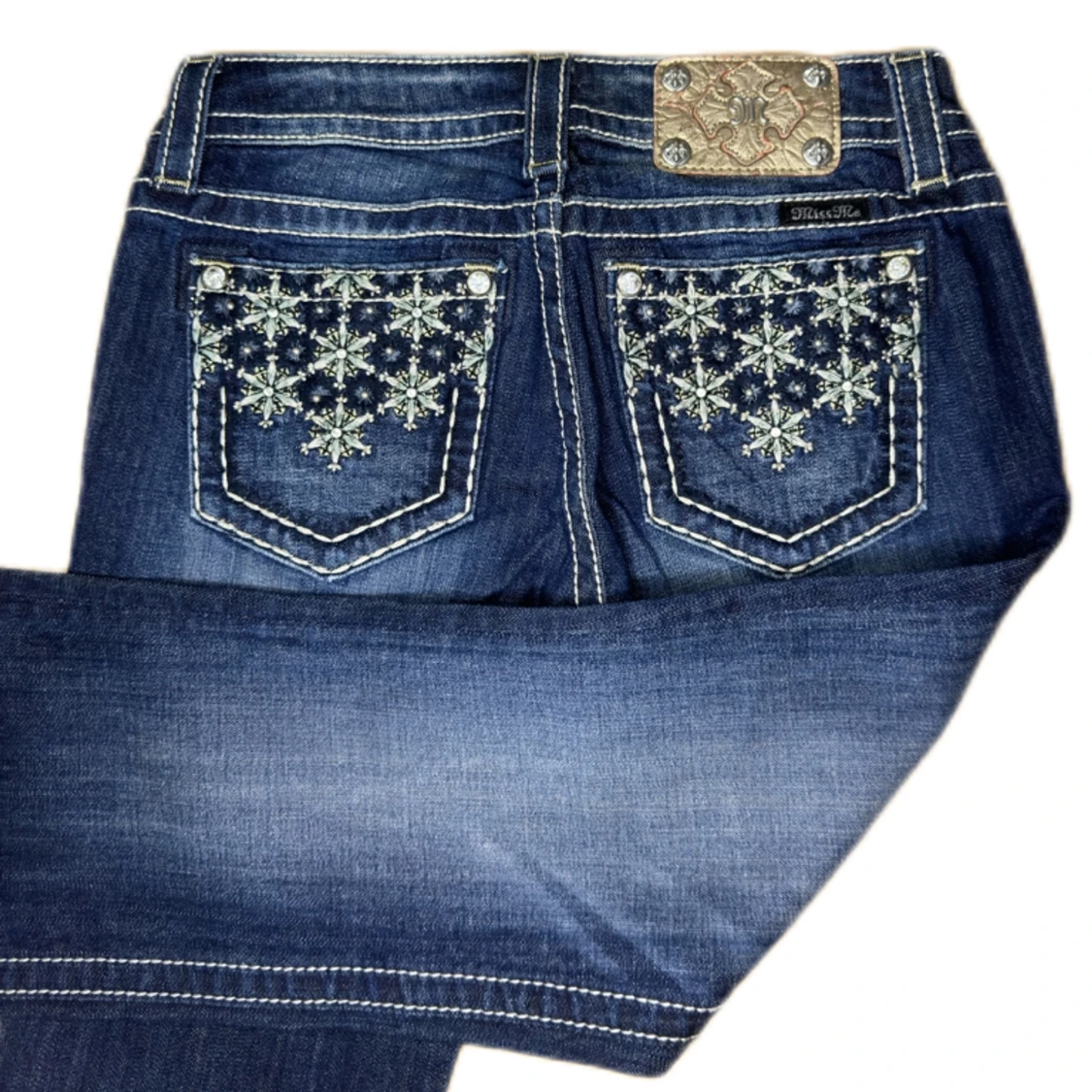 Miss Me jeans i modellen ”signature/boot” midjemåttet rakt över är 38cm. Ytterbenet 107cm och innerbenet 87cm. Jeansen är som nya. Kontakta vid intresse!