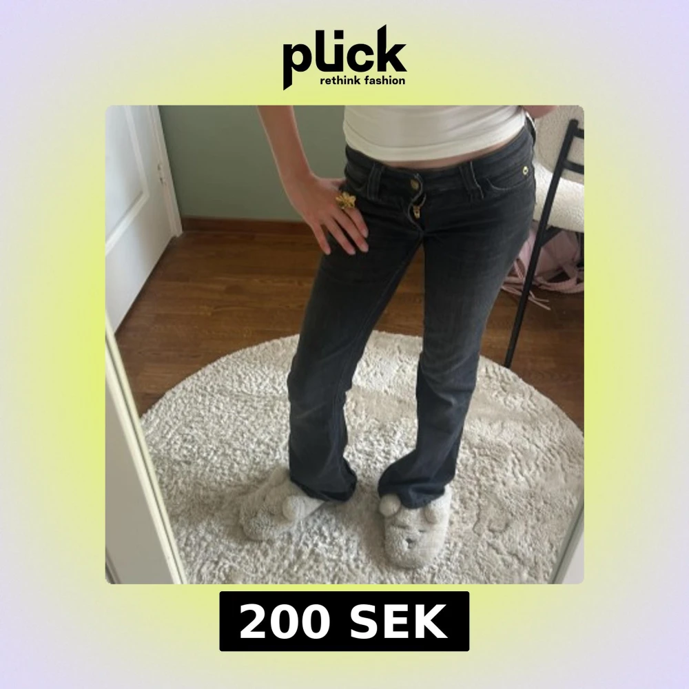 Snygga svarta jeans från Cheap Monday, modell Booty Bei. De har bootcut-ben och låg midja, med klassisk Cheap Monday-patch bak. Materialet är en stretchig mix av bomull, polyester och elastan för skön passform.