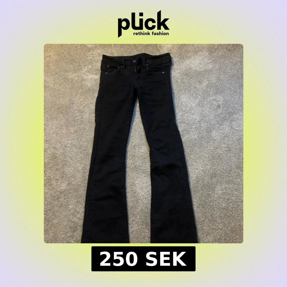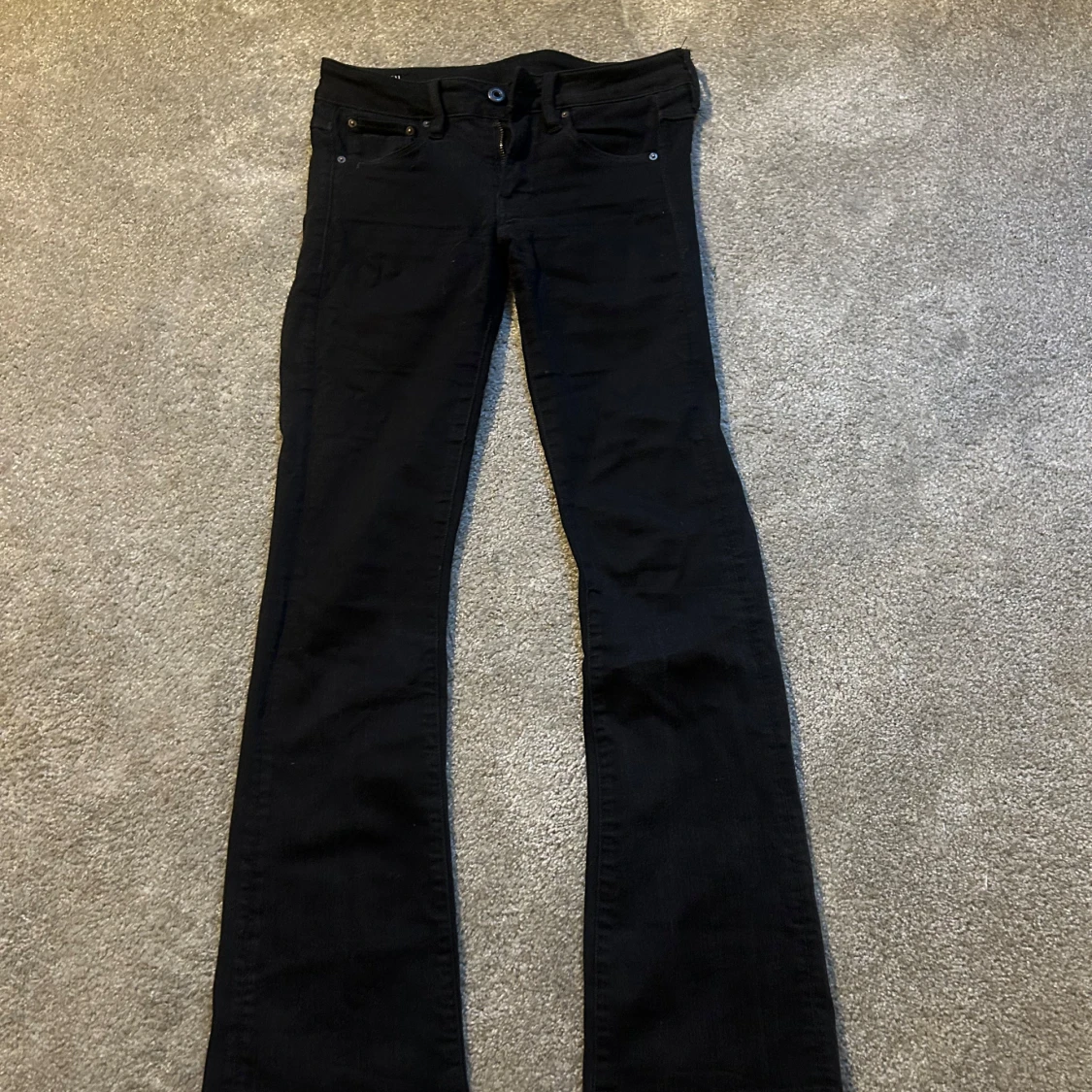 snygga svarta jeans från G-star RAW, väldigt låga i midjan och utsvängda ben! innerbenslängden är 78.