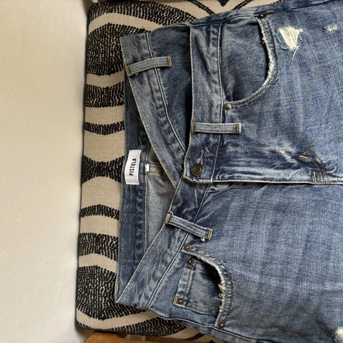Säljer min raka jeans från märket Pistola. Hade ingen bra galje att fota med men de har en extra ”midja” som blir väldigt snygg då jeansen är låg/mellan höga i midjan. Storlek 24 men passar mig som är en 36a.
