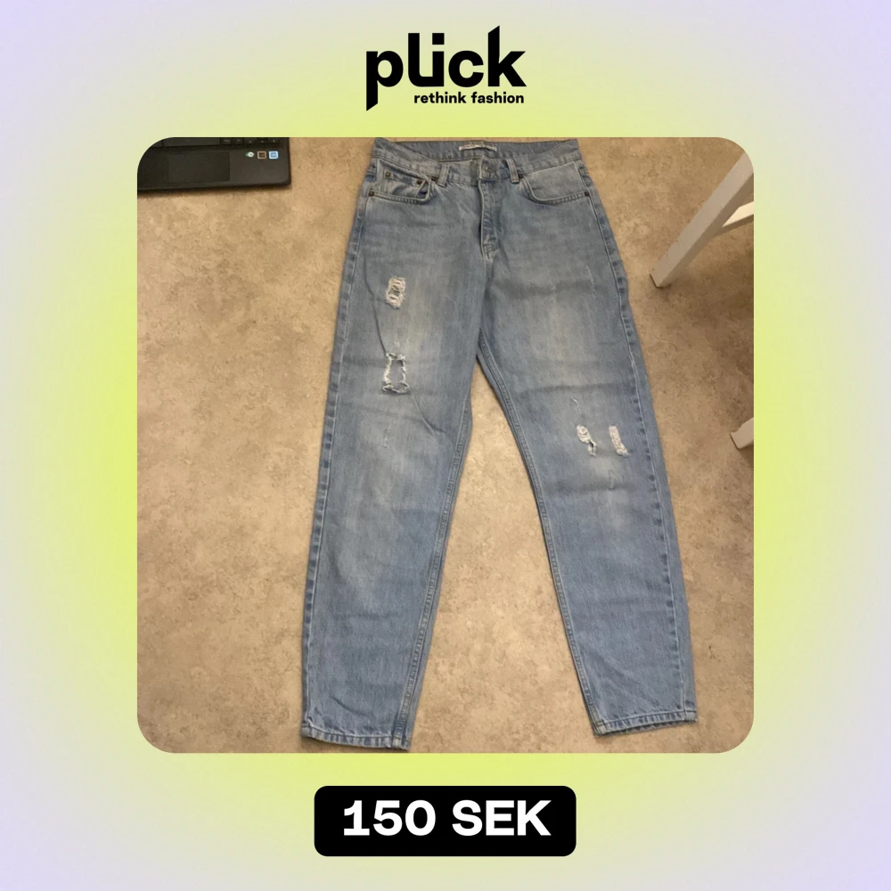 Säljer ett par ljusa jeans från Junkyard i modellen Kay Girlfriend. De har en avslappnad passform med slitna detaljer på framsidan för en cool look. Perfekta för vardagsbruk och kan stylas med allt från sneakers till klackar. Passar bra till både vår och sommar!