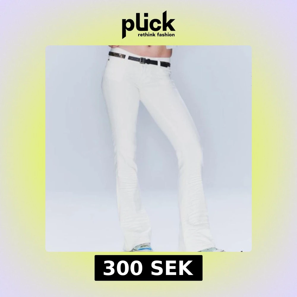Helt oanvända snygga vita bootcut jeans från Cheap Monday med klassisk femficksdesign och logga bak. Byxorna har låg midja och är tillverkade i en stretchig bomullsblandning för skön passform.