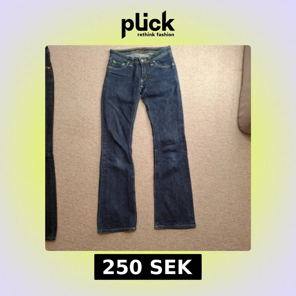 PRIS KAN DISKUTERAS. Snygga blå jeans från Denimbirds med bootcut-modell och gula sömmar på bakfickorna. Klassisk femficksdesign, normal passform. Perfekta för dig som gillar en tidlös look med lite extra edge. Passar också dig om du har sorlek 34.