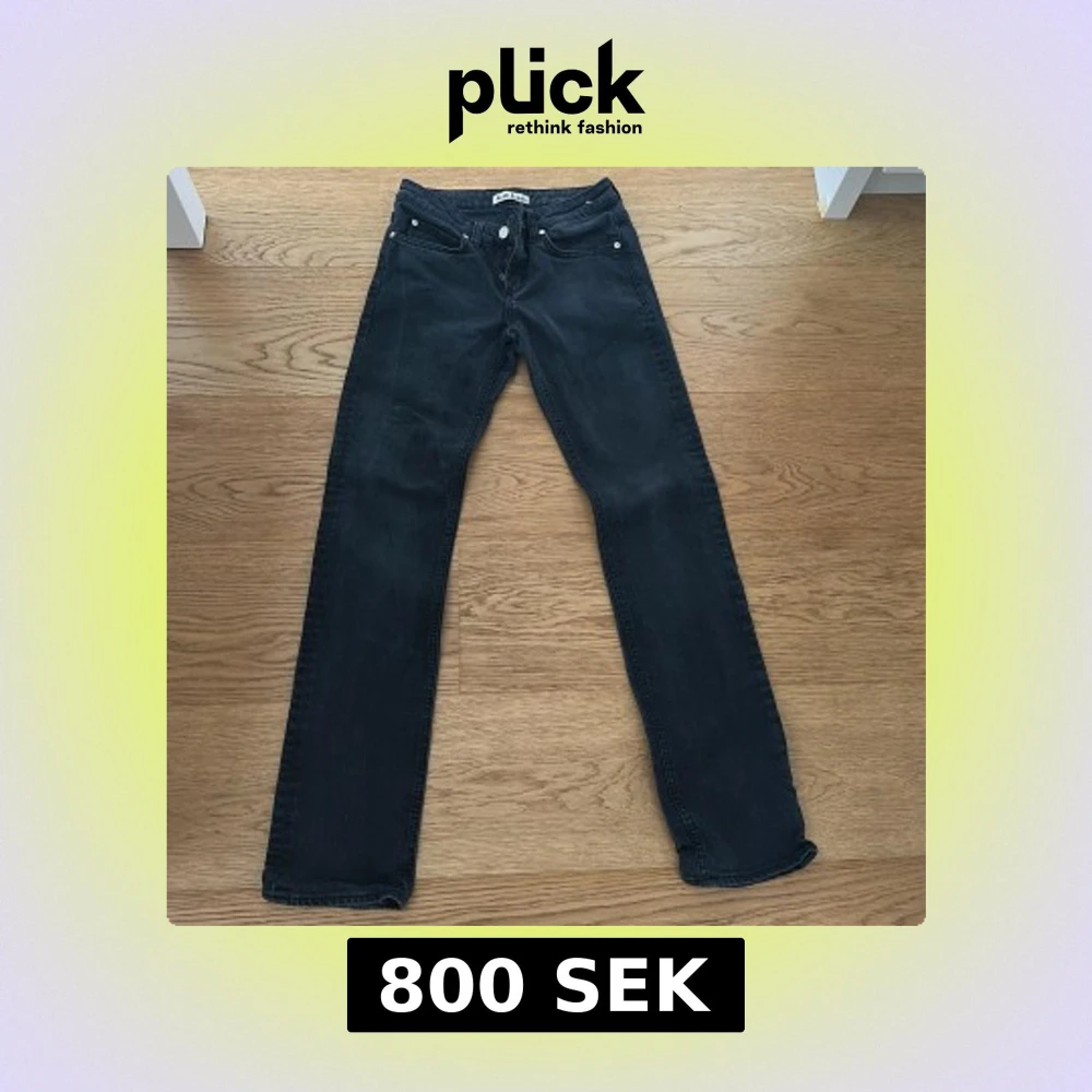 Snygga svarta jeans från Acne Jeans med klassisk femficksdesign och raka ben. Jeansen har normal passform och är tillverkade i ett slitstarkt bomullstyg. Perfekta för dig som gillar en stilren och enkel look. Storleken är 26/32