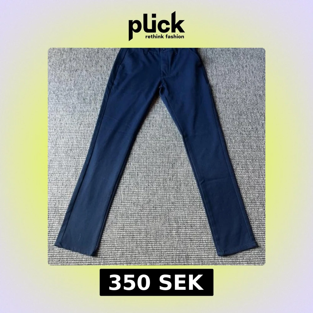Snygga midnattsblå kostymbyxor från Grunt med raka ben och klassisk passform. Byxorna har hällor för bälte, knäppning fram och bakfickor med knapp. Perfekta för en clean och stilren look. Andvända typ 1 gång. Hör av er vid frågor och funderingar😄🙌
