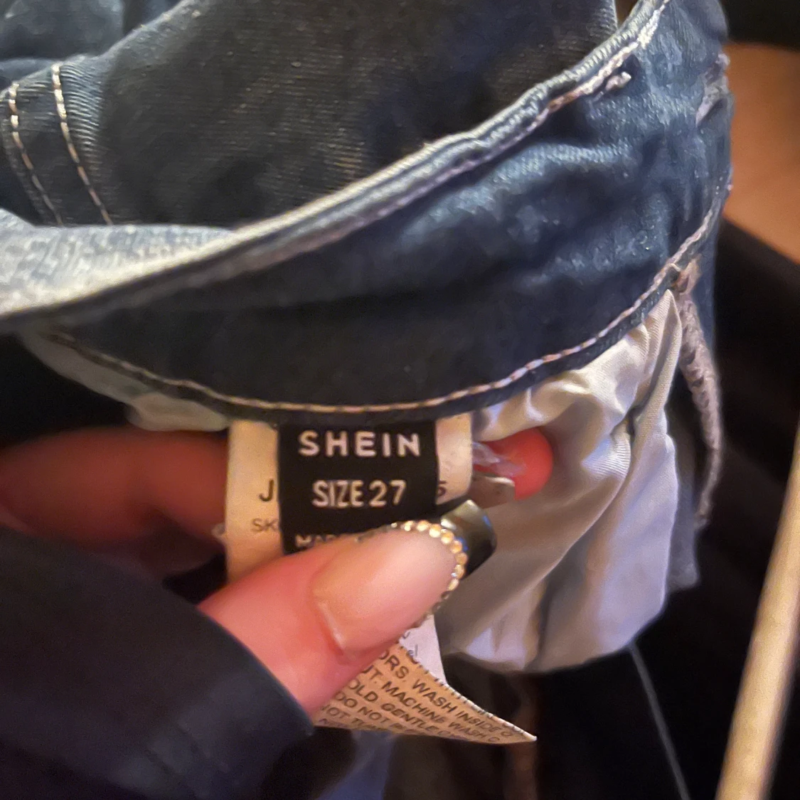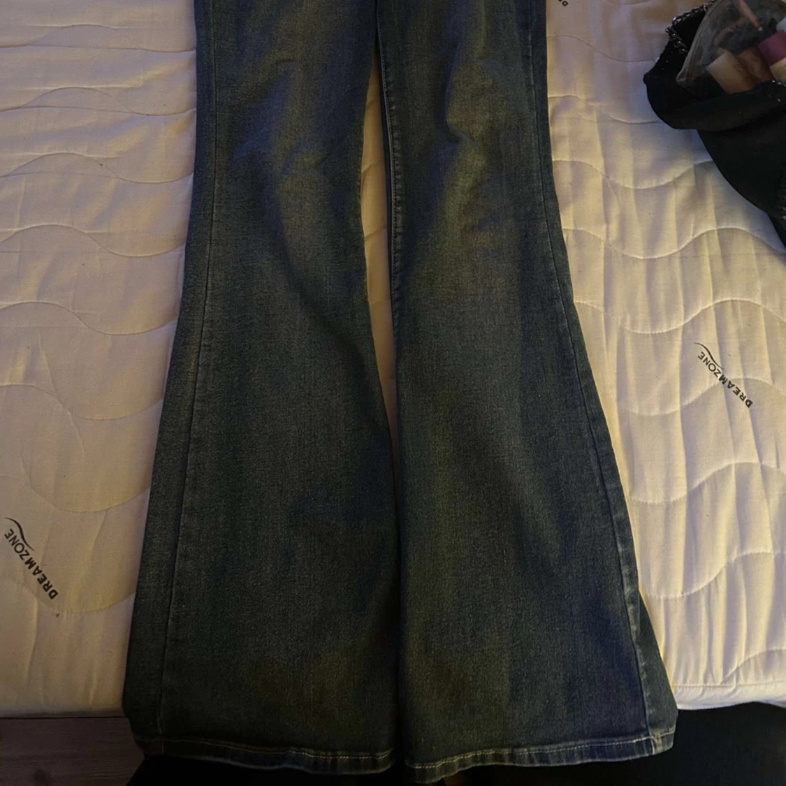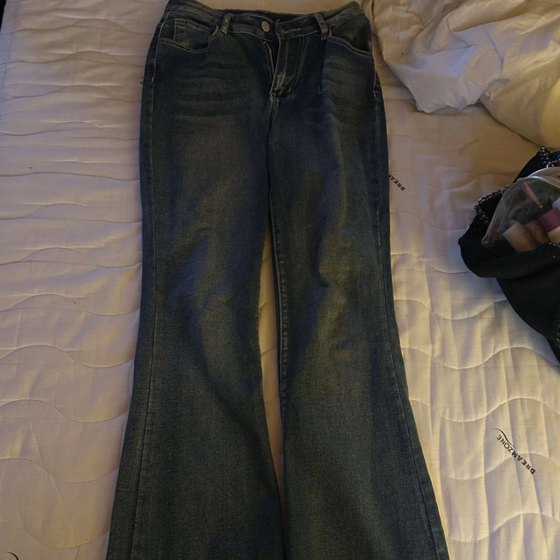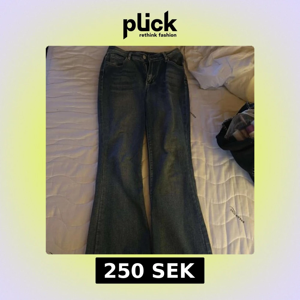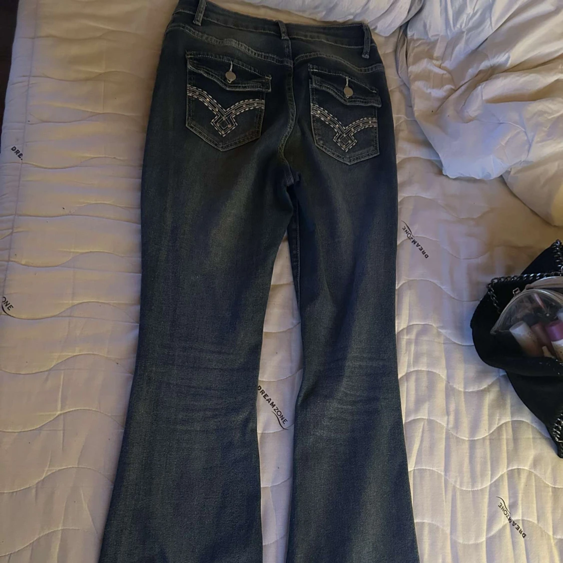 Snygga blå bootcut jeans från SHEIN i storlek 27. Jeansen har klassisk femficksdesign, broderade detaljer på bakfickorna och en lätt utsvängd passform. Har nästan aldrig använt dom o därför är dom i väldigt bra skick, men dom är jätte snygga.