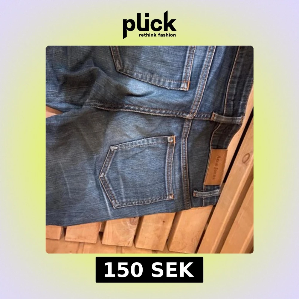 Säljer ett par klassiska blå jeans från Acne Jeans med snygg tvätt och raka ben. Jeansen har fem fickor, orangea sömmar och läderpatch med logga bak i midjan. Perfekta för dig som gillar stilrena och tidlösa jeans.