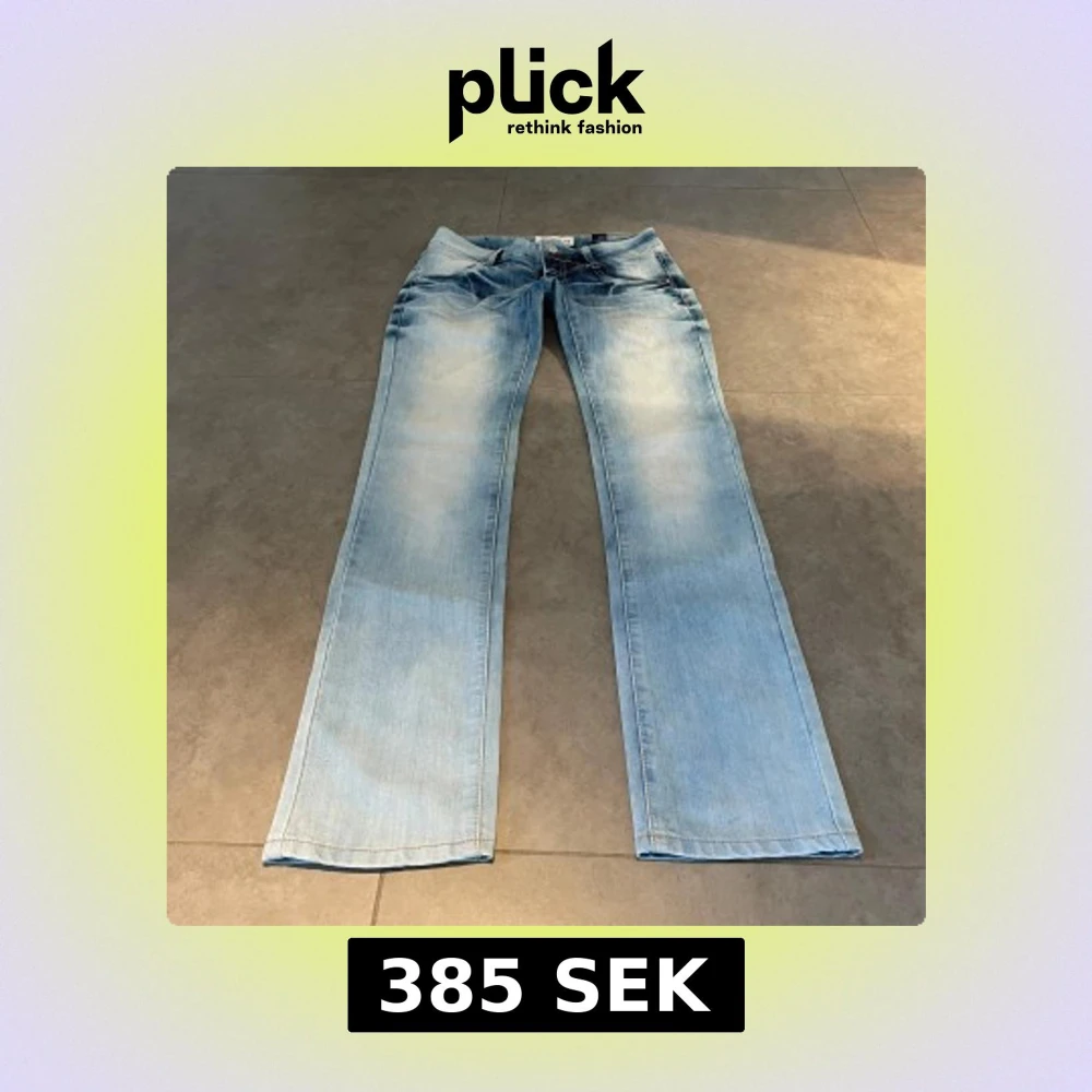 (3) Ljusblåa lågmidjade jeans med världens finaste tvätt i väldigt stretchiga material så den sitter superfint i rumpan. Midjemått rakt över 34cm, innerbenslängd: 81 cm💞