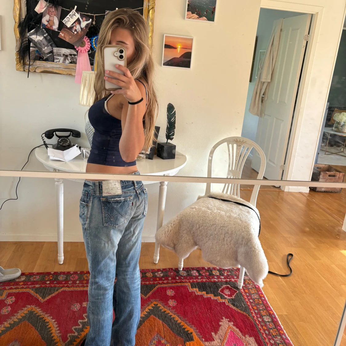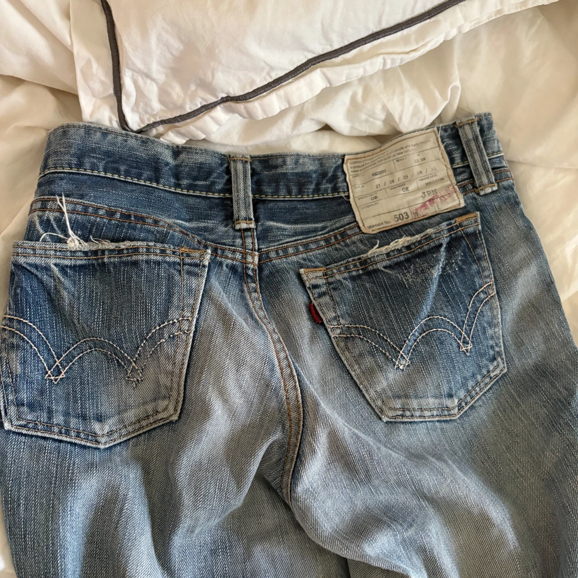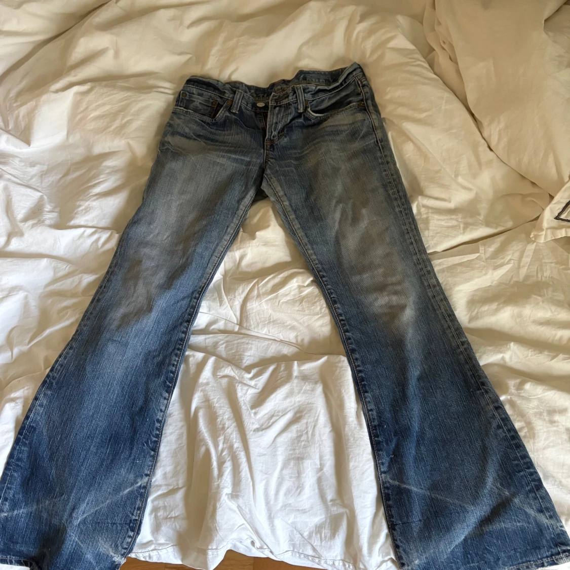 Jeans i ljusblå tvätt med snyggt slitna detaljer. Modellen är lågmidjad med bootcut-ben.