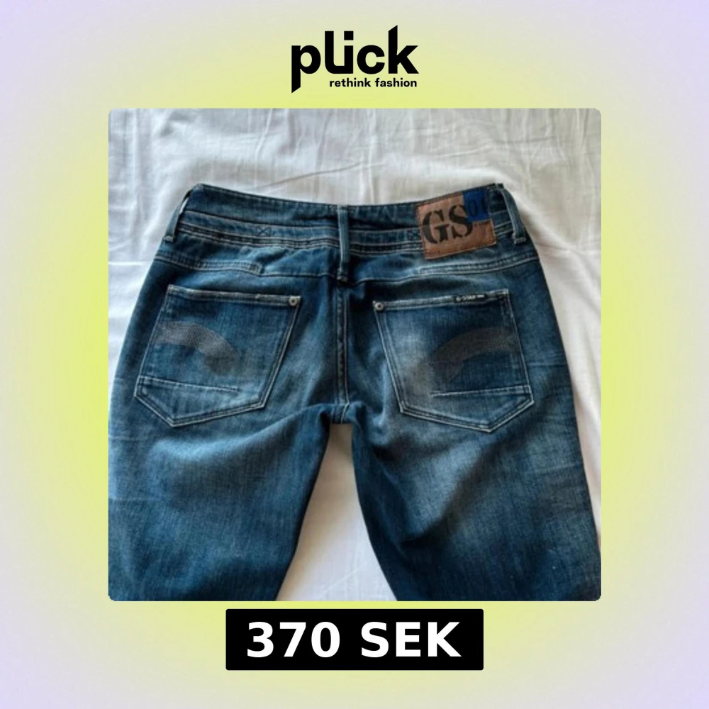 Säljer ett par snygga lågmidjade blå jeans från G-Star. De har en cool tvättad look med slitningar och klassiska femficksdetaljer. Innerbenslängd 80 och midjemått 37